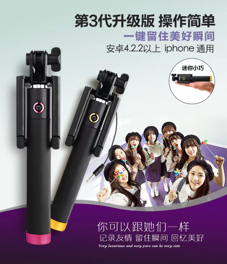 三世代線制御自撮り棒携帯電話共通生放送ミニ自撮り棒伸縮棒折り畳み自撮り神器メーカー