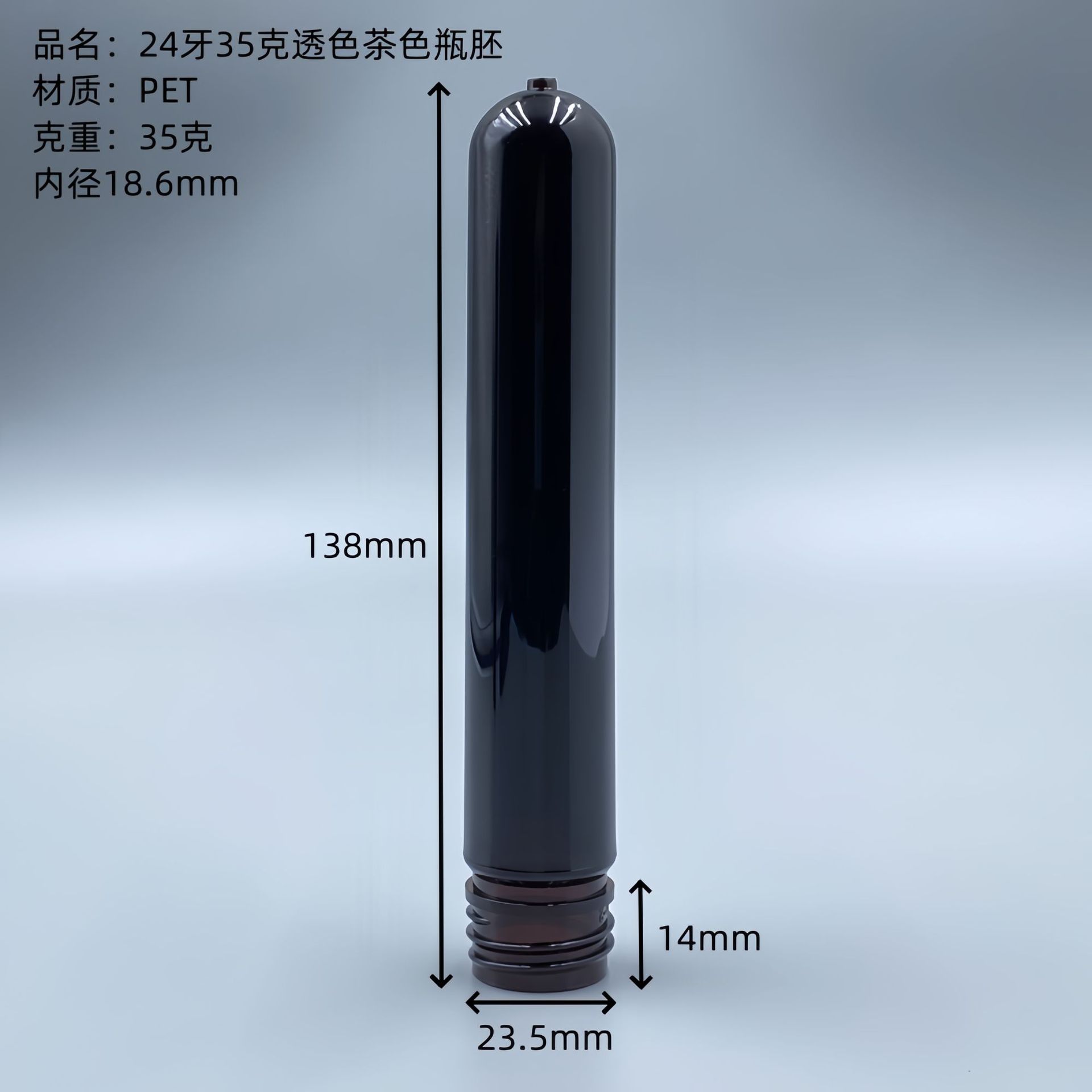現物瓶胚24歯35グラム138mm長透色茶色pet材質化粧品包材管胚工場直供