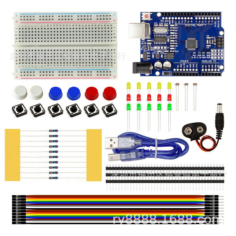 マザーボード付きスターターキット UNO R3 13-in-1 入門キット 400穴ブレッドボード LEDライトキット