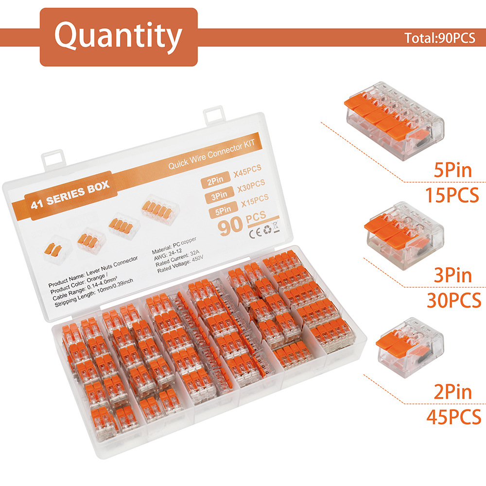 90pcsクイック端子クロスボーダー75本透明ワイヤコネクタPCT412PCT413PCT415CE
