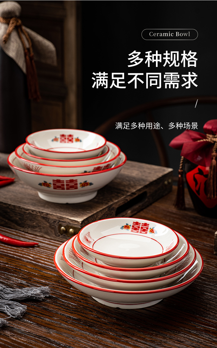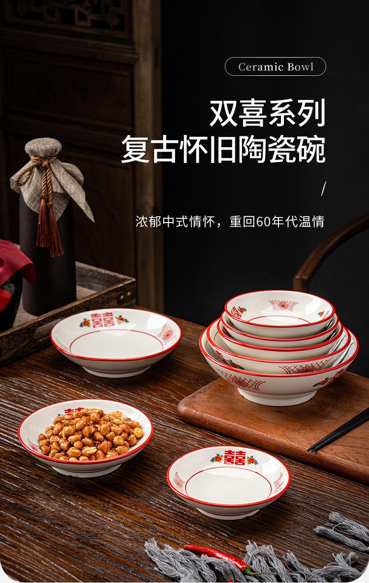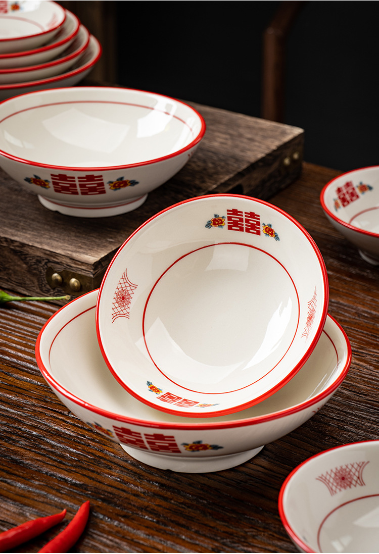 赤双喜レトロ食器レトロ陶磁器スープ碗ラーメン碗橋米線闘笠碗甜品碗広口碗