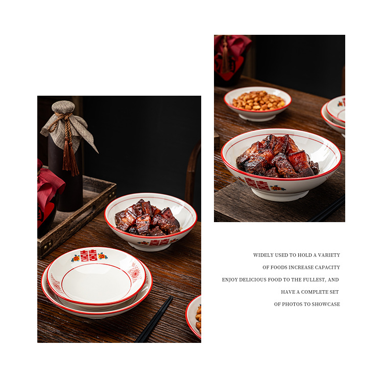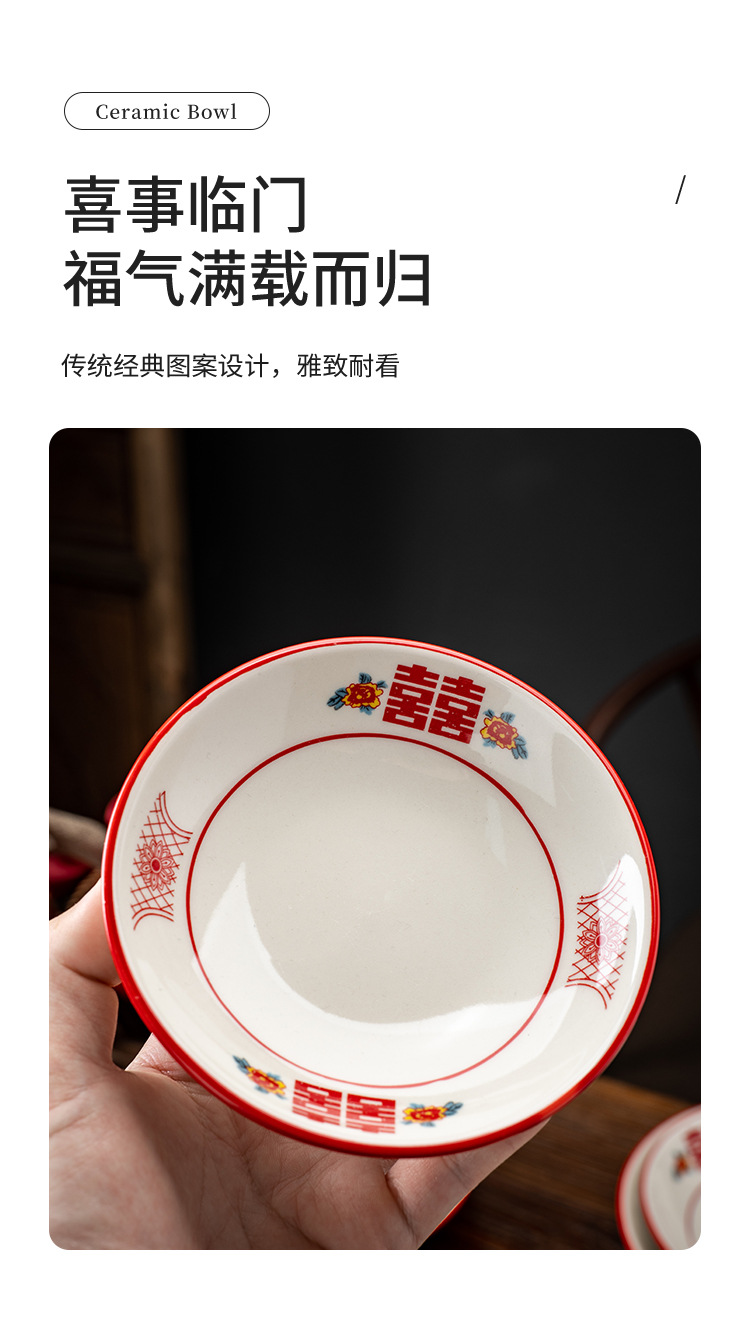 レトロ紅双喜酒碗軽食皿ホテルレストランお菓子碗スープ茶碗レトロお祝い陶磁器食器