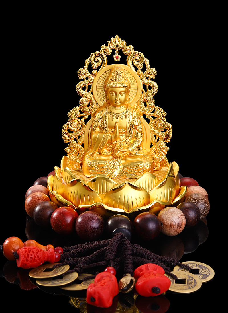 車の上の太陽の回転の車は合金の両面の千手観音を飾って車内のアクセサリを飾って車の置物を飾ります。