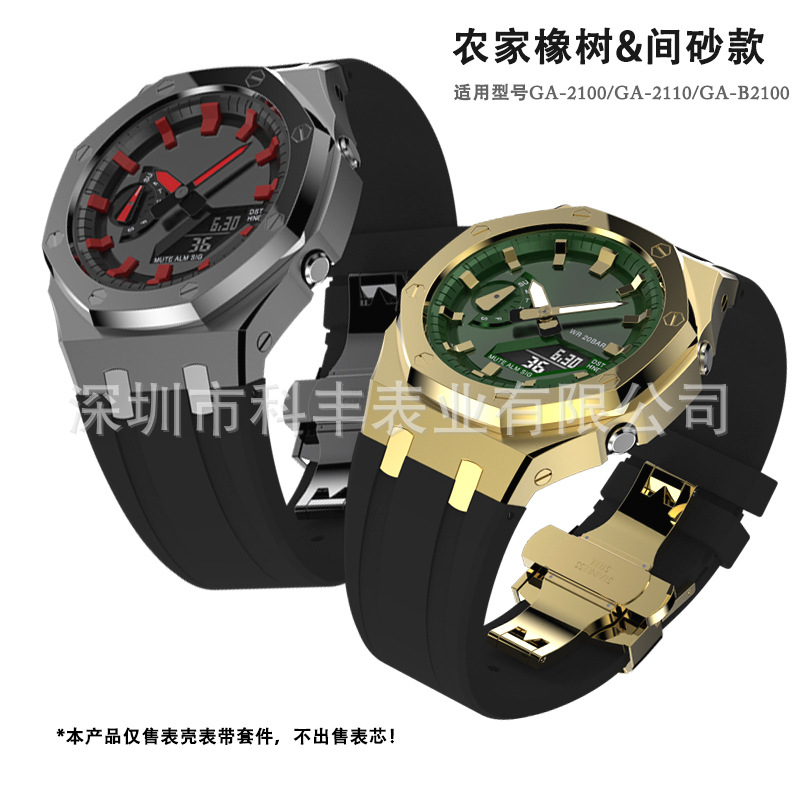 适用于GA2100四代间砂款农家橡树316L不锈钢表壳氟橡胶表带配件