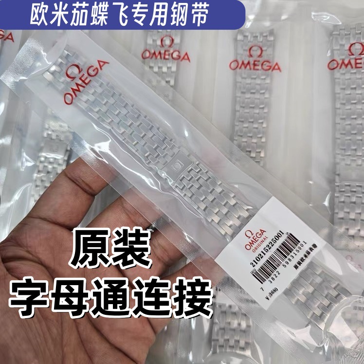 适用欧米加碟飞424钢表带折叠扣不锈钢精钢表链手表带蝶飞钢带男