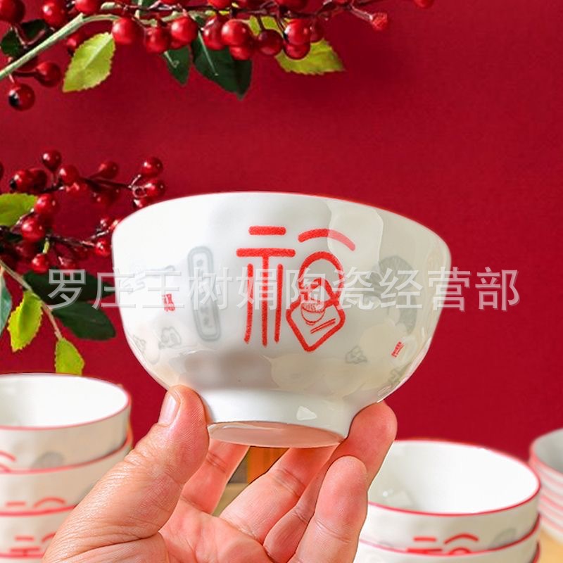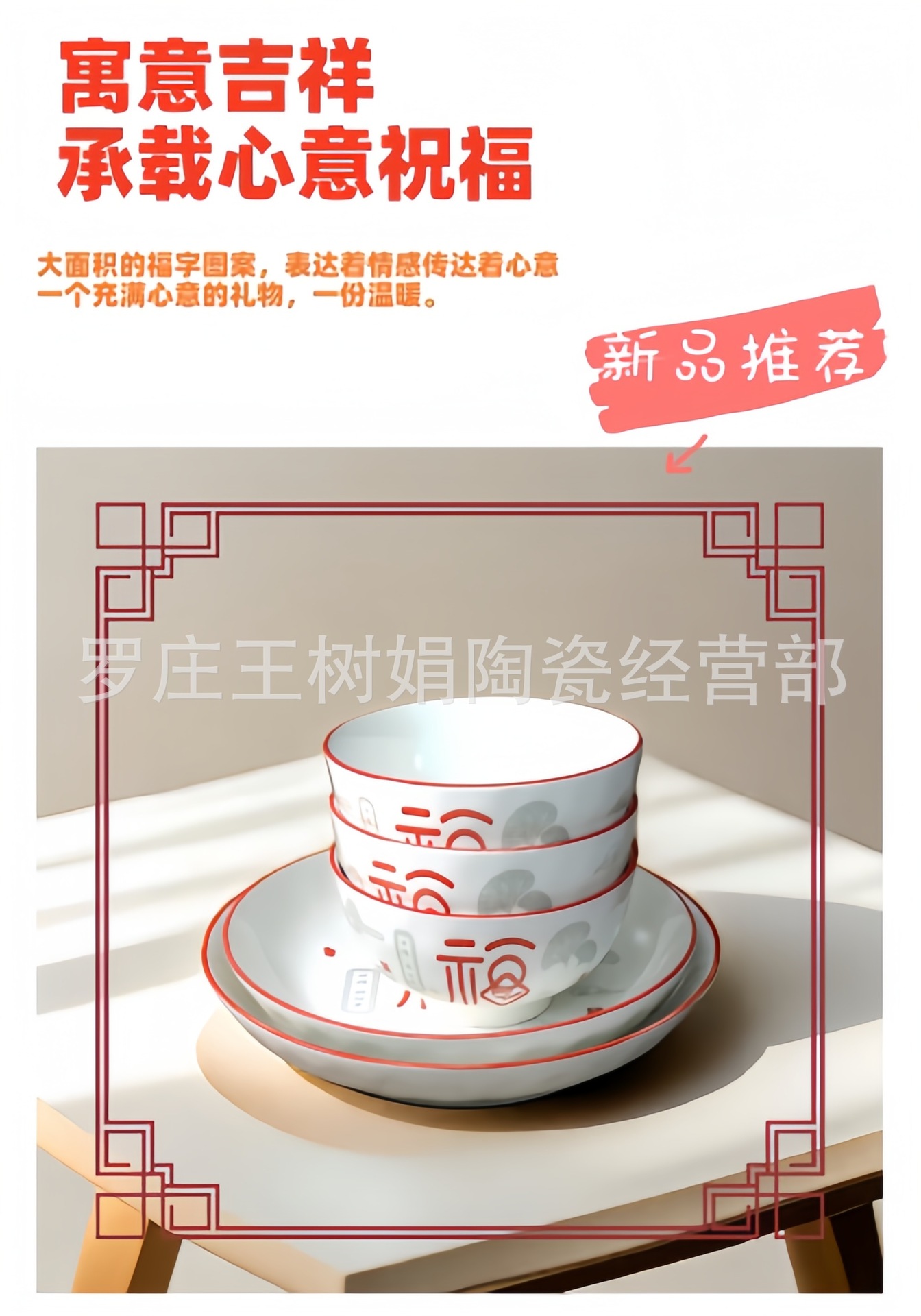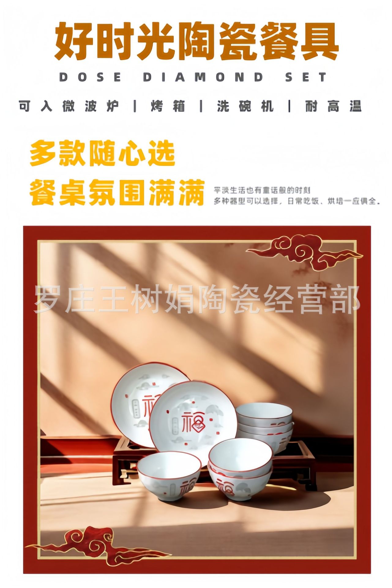 山西省産陶磁器印刷シリーズ「好时光雨石碗」中国風古典福字食器、古典風、工場卸売