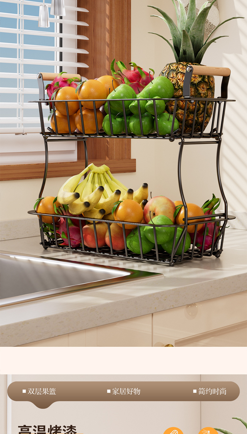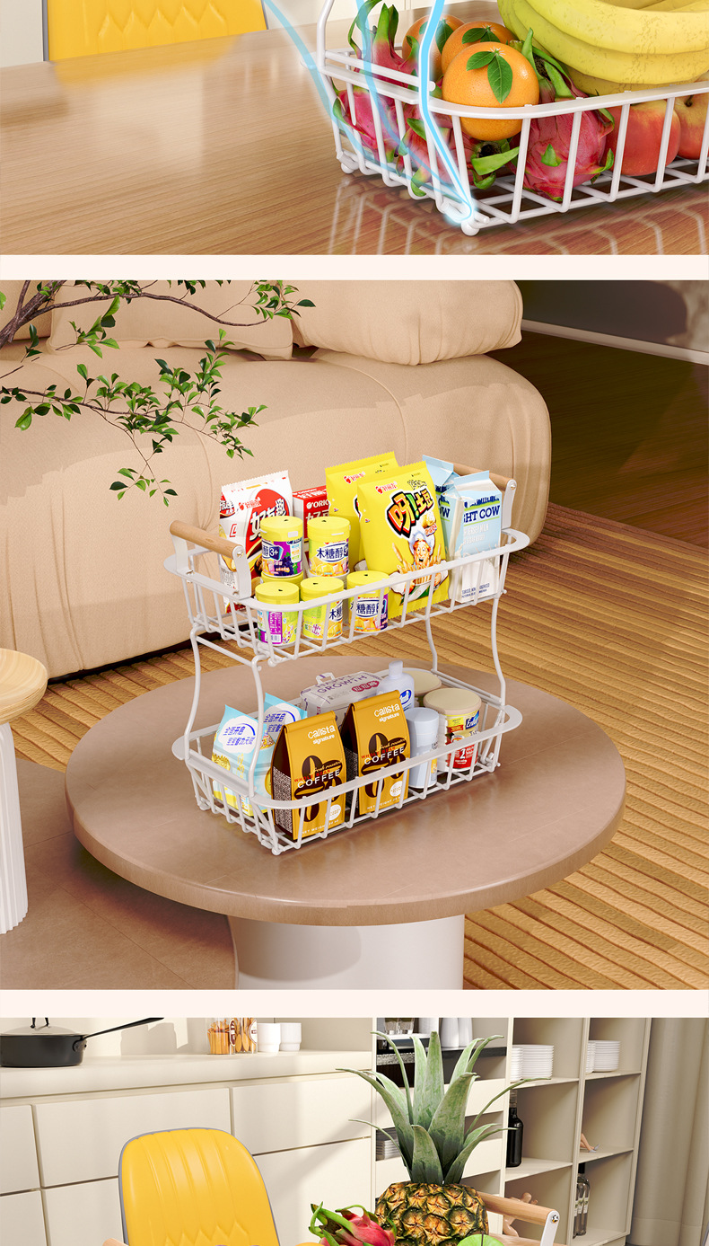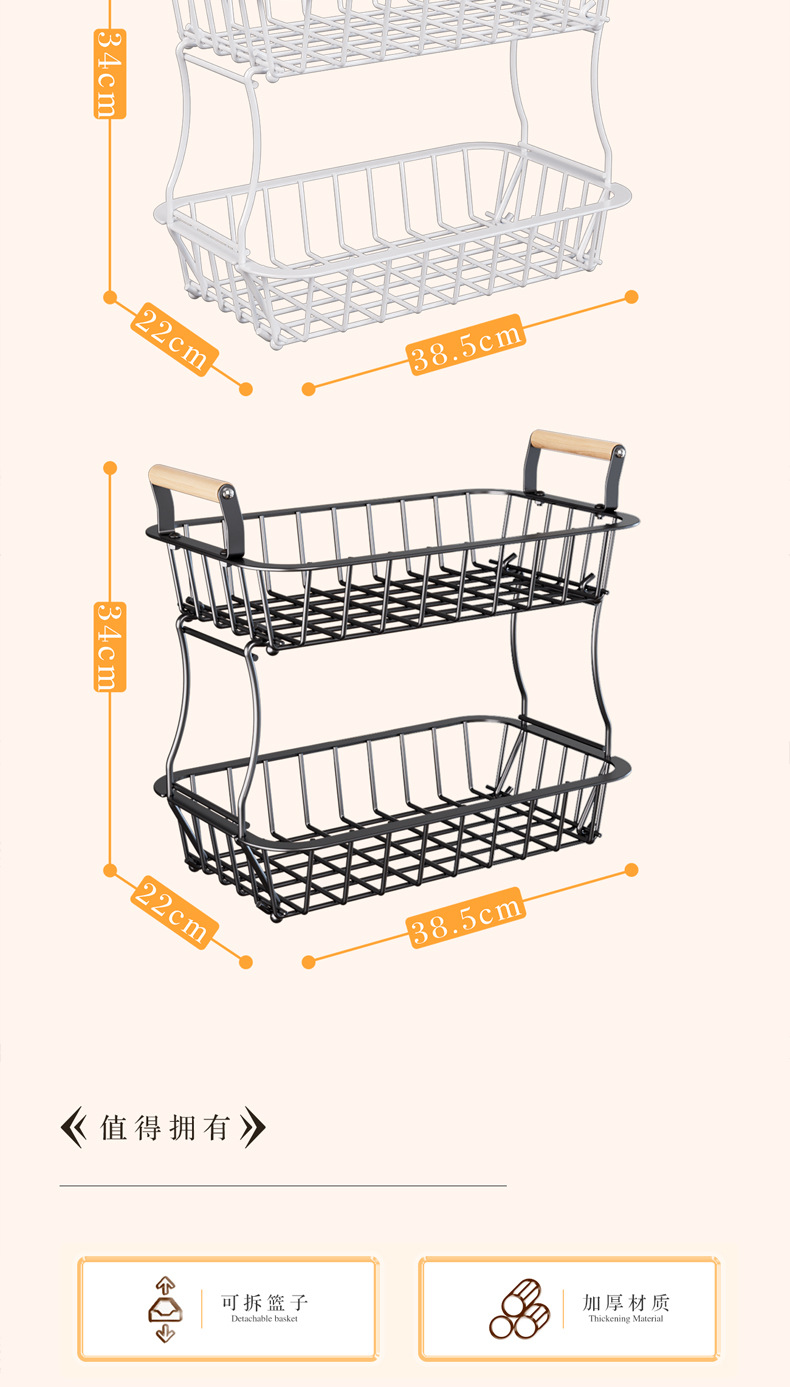 国境を越えた台所の果物棚客間の二重取り外し可能な収納棚家庭用デスクトップ多機能収納バスケット