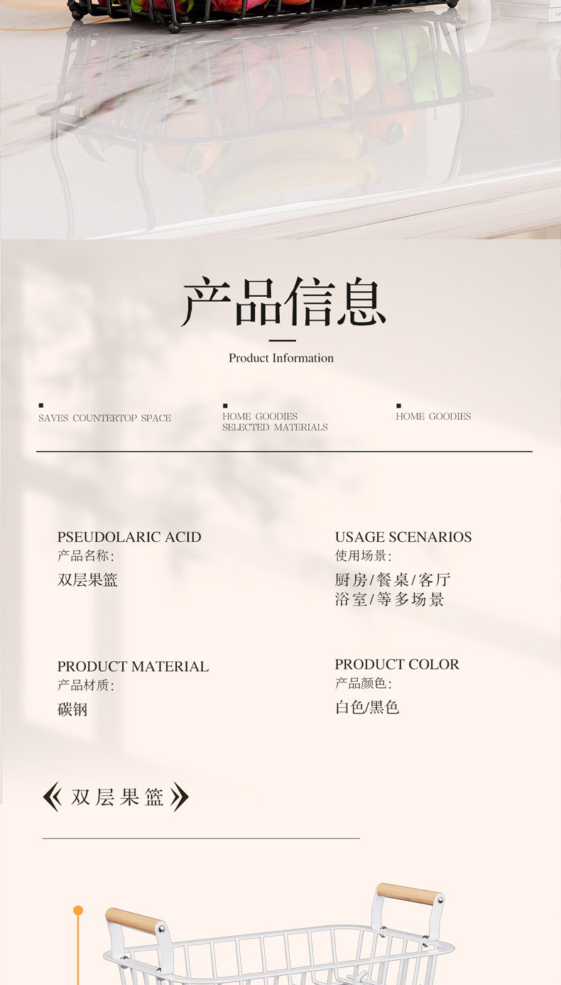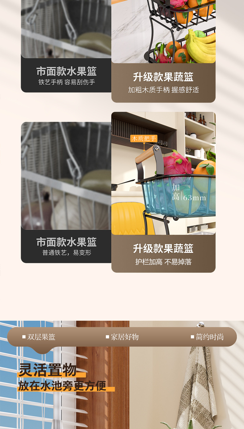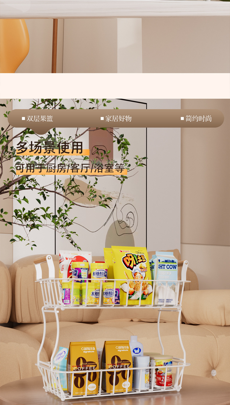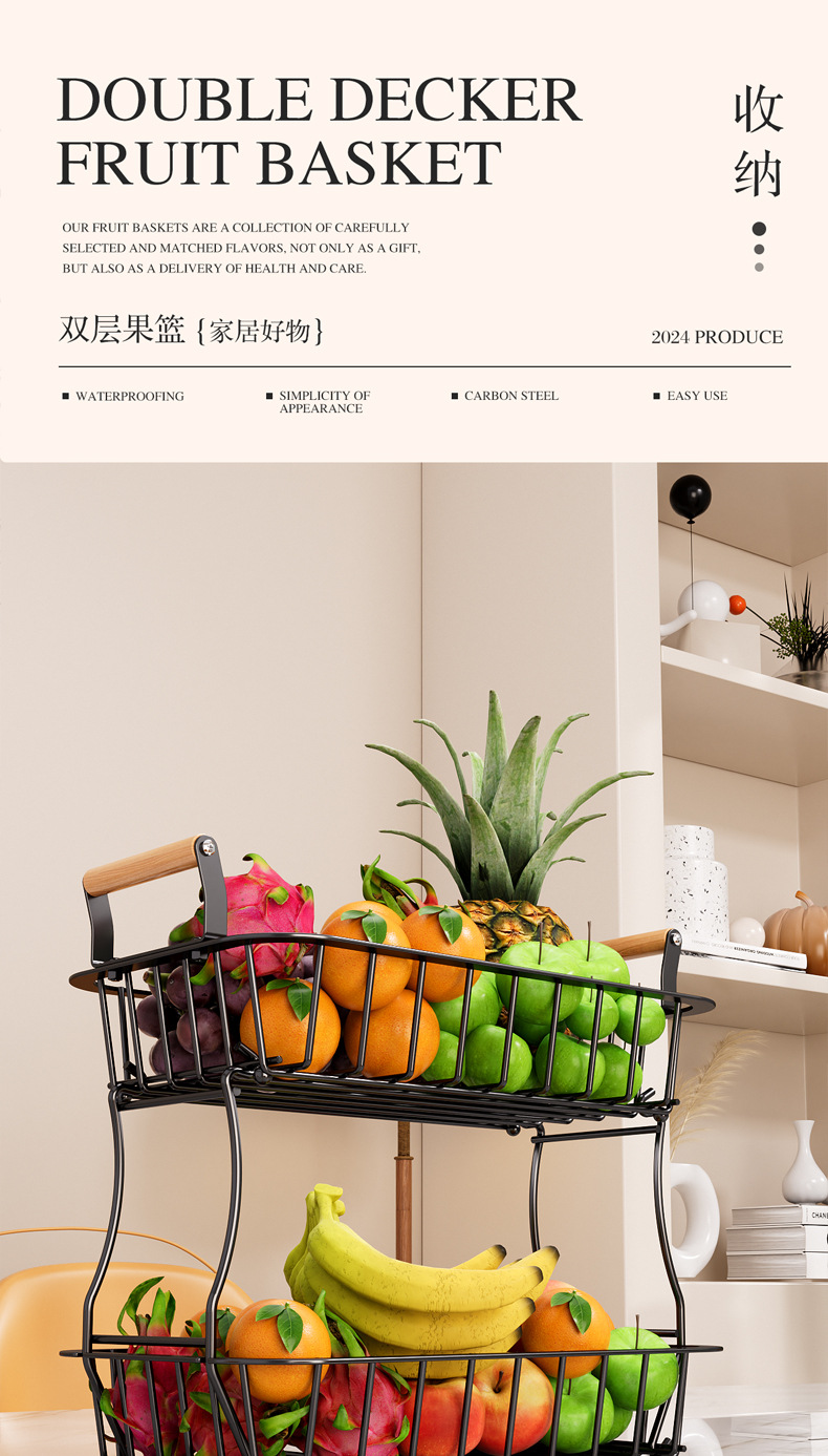 国境を越えた台所の果物棚客間の二重取り外し可能な収納棚家庭用デスクトップ多機能収納バスケット