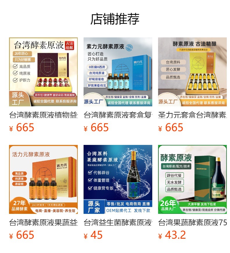 宜江春活力源酵素原液、宜江春甘利源、宜江春スリム源、宜江春天力源聖力源、可芳博瑞達毎日万博士大奥台湾東酵素