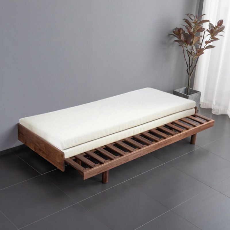 全实木黑胡桃木客厅推拉沙发床伸缩床抽拉现代极简式榻榻米纯实木