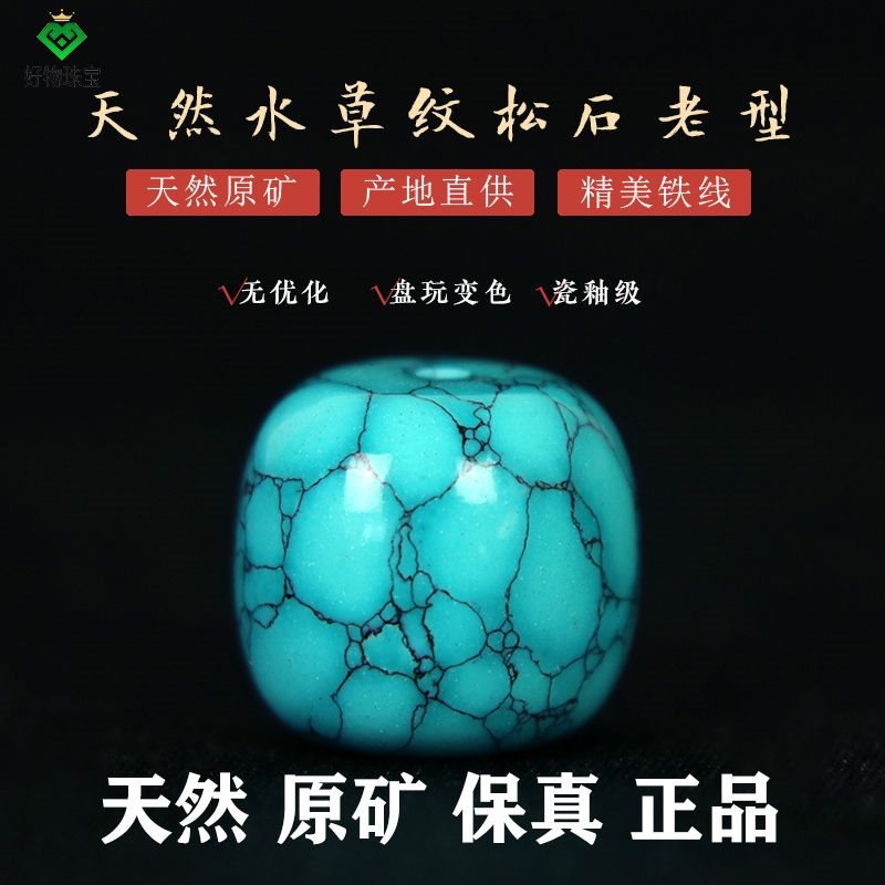 天然原鉱緑松石単珠鉄線紋桶珠老型桶散珠金剛文は手串を遊んで玉をつけます。