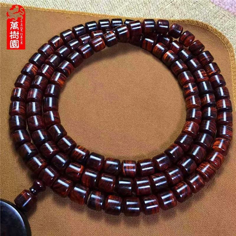 本場海南黄花梨手串108個桶珠紫油梨ブレスレット男女手作り仏珠飾り数珠