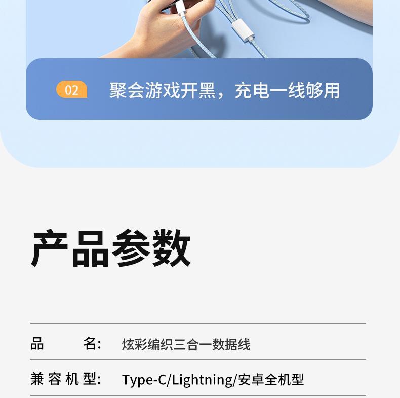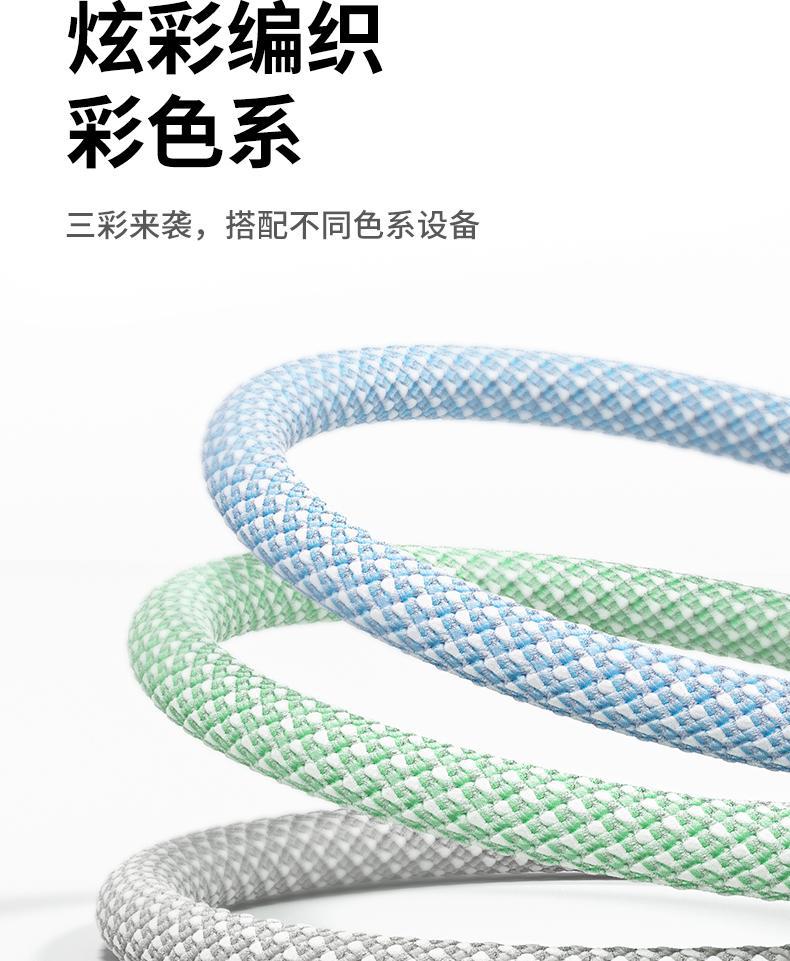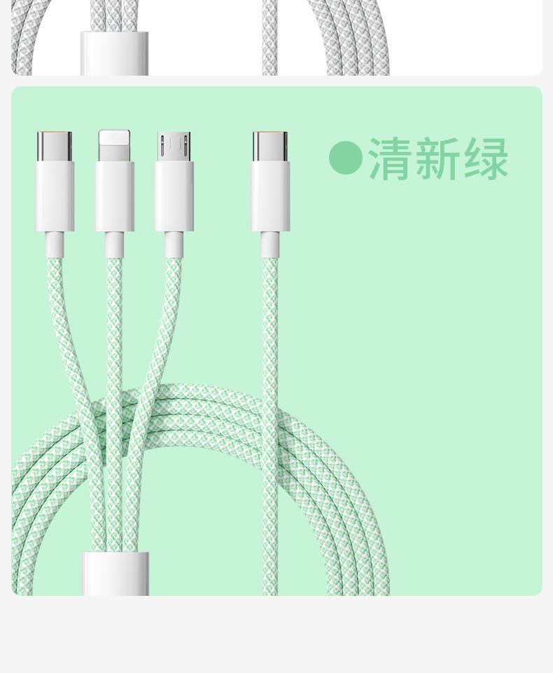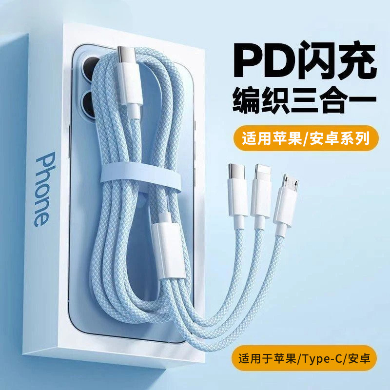 C口編み一モップ三ケーブル適用アップル華為安卓携帯電話Type-C急速充電線PD充電線
