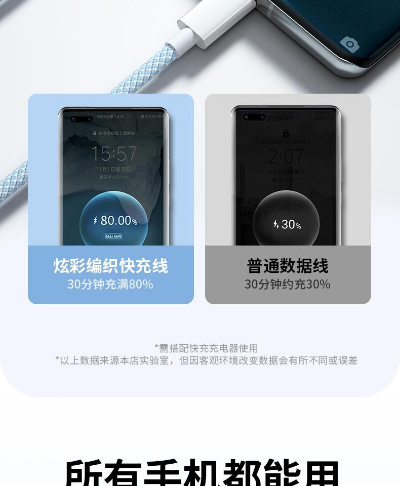 編み物一モップ三66w急速充電typecデータケーブルは華をアップルのアンドロイド携帯電話充電ケーブルに適用する