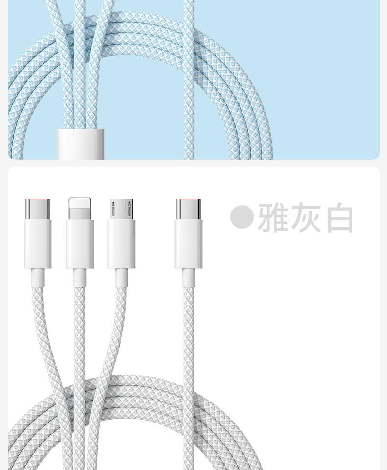 型番 スカイブルー【pd一引き三データ線】100w超速充,雅灰白【pd一引き三データ線】100w超速充