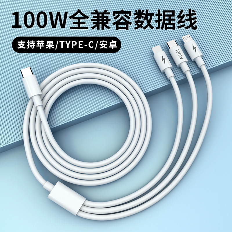 100W超级快充Type-c口三合一充电线6A适用苹果华为安卓手机数据线