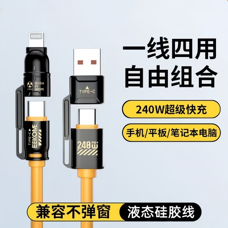 四合一数据线240W超级快充充电线适用苹果17华为小米PD车载二拖二