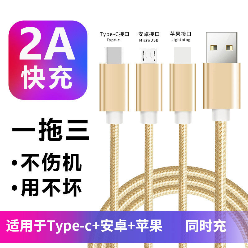 一モップ三充電線三合一速充電ケーブルはアップル華為安卓type-c延長2メートル3mを適用する