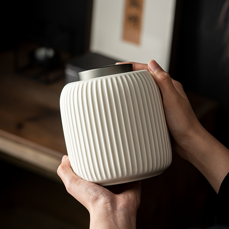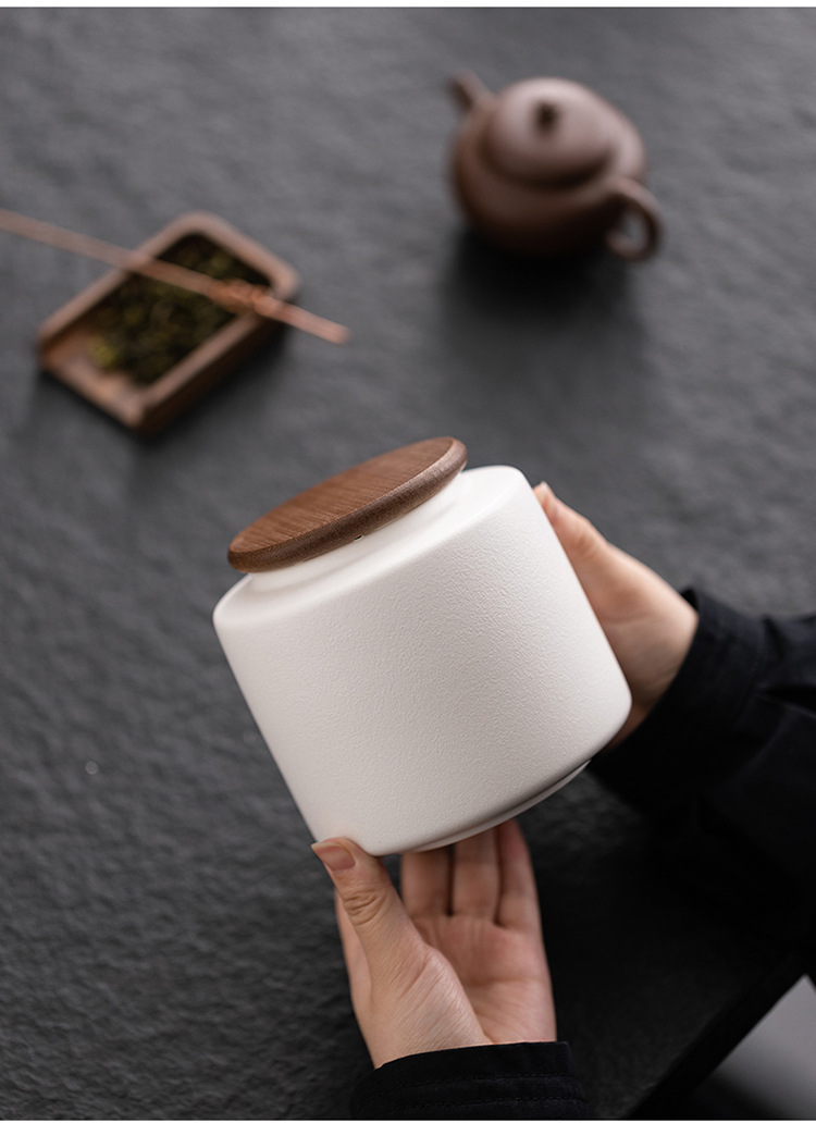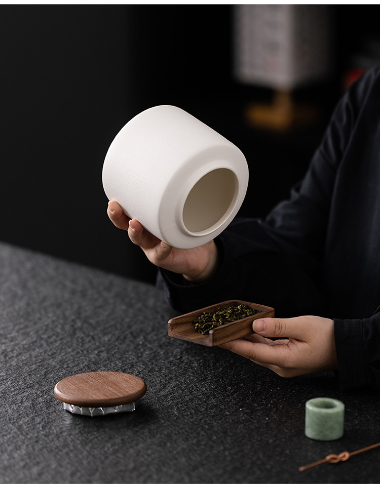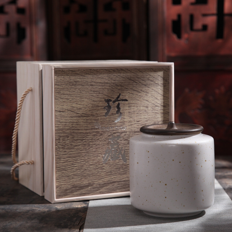 シンプルな茶葉缶陶磁器密封缶粗陶大トランペット家庭用貯蔵タンク防湿創意ギフトボックス包装