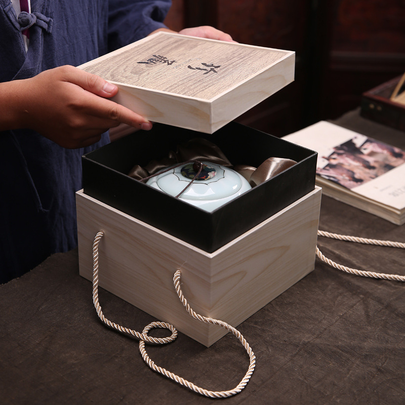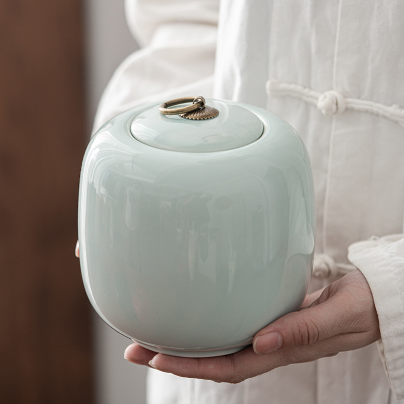 青磁茶葉缶陶磁器大サイズ半斤入り紅茶緑茶汎用密封缶茶葉包装箱プレゼントロゴ