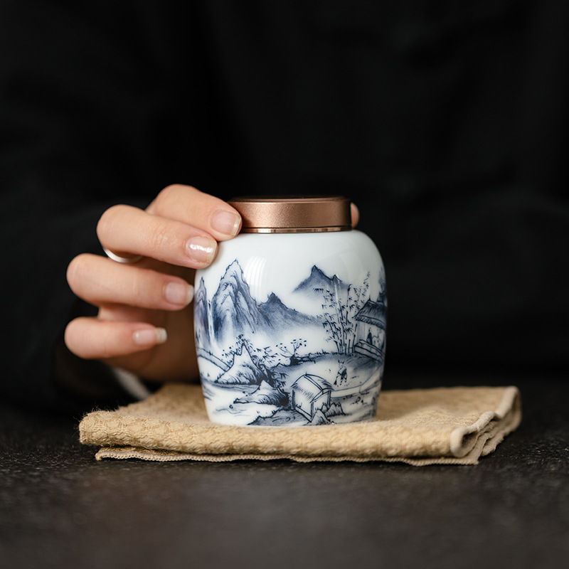 レトロ陶磁器ミニ小サイズ春茶陶磁器茶葉缶密封缶茶缶貯蔵缶収納缶空缶ロゴ