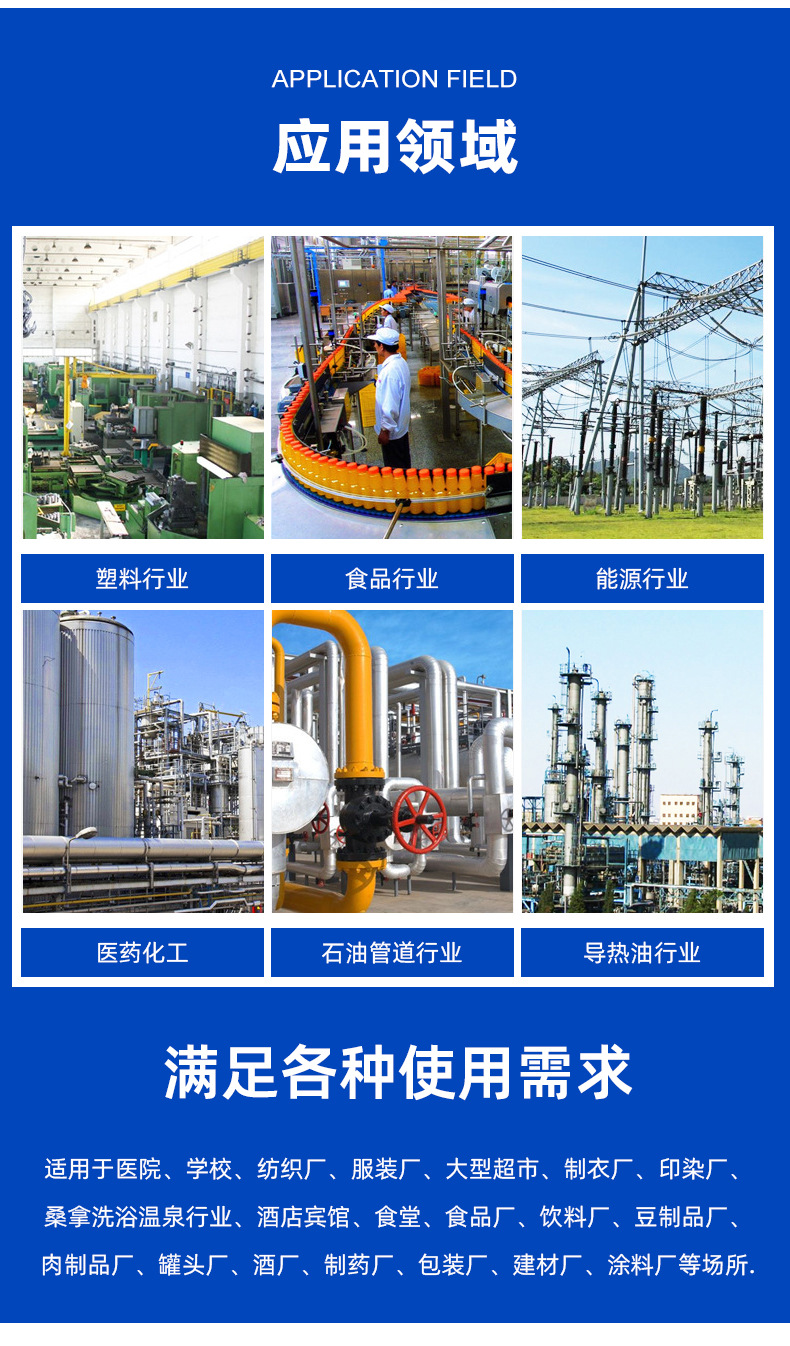 用途 食品加工、バイオケミカル、洗濯とアイロンがけ、電気めっき表面処理