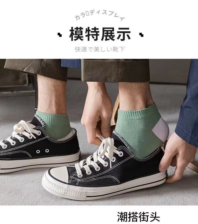 潮流袜子男士短袜春夏款纯色竖纹百搭吸汗透气低帮运动袜船袜男款
