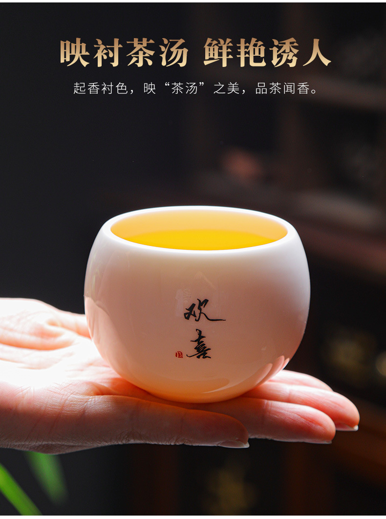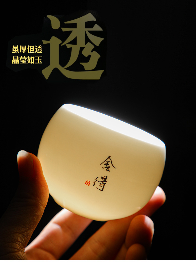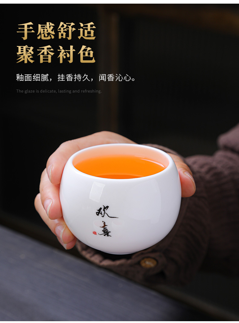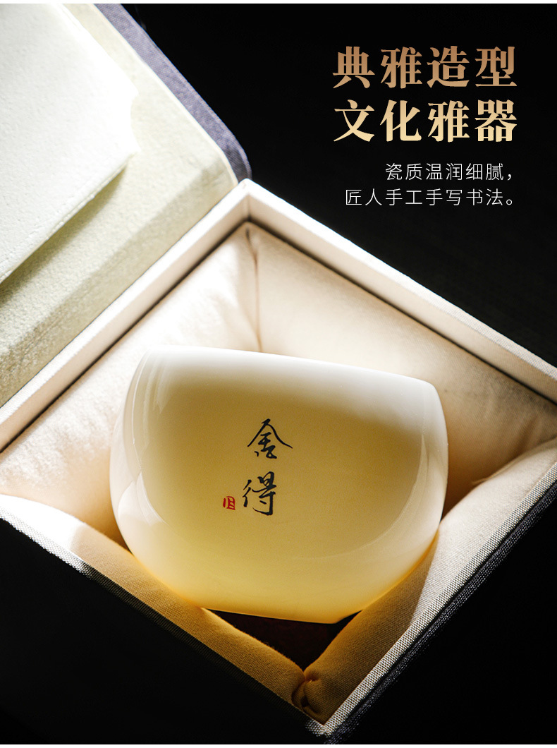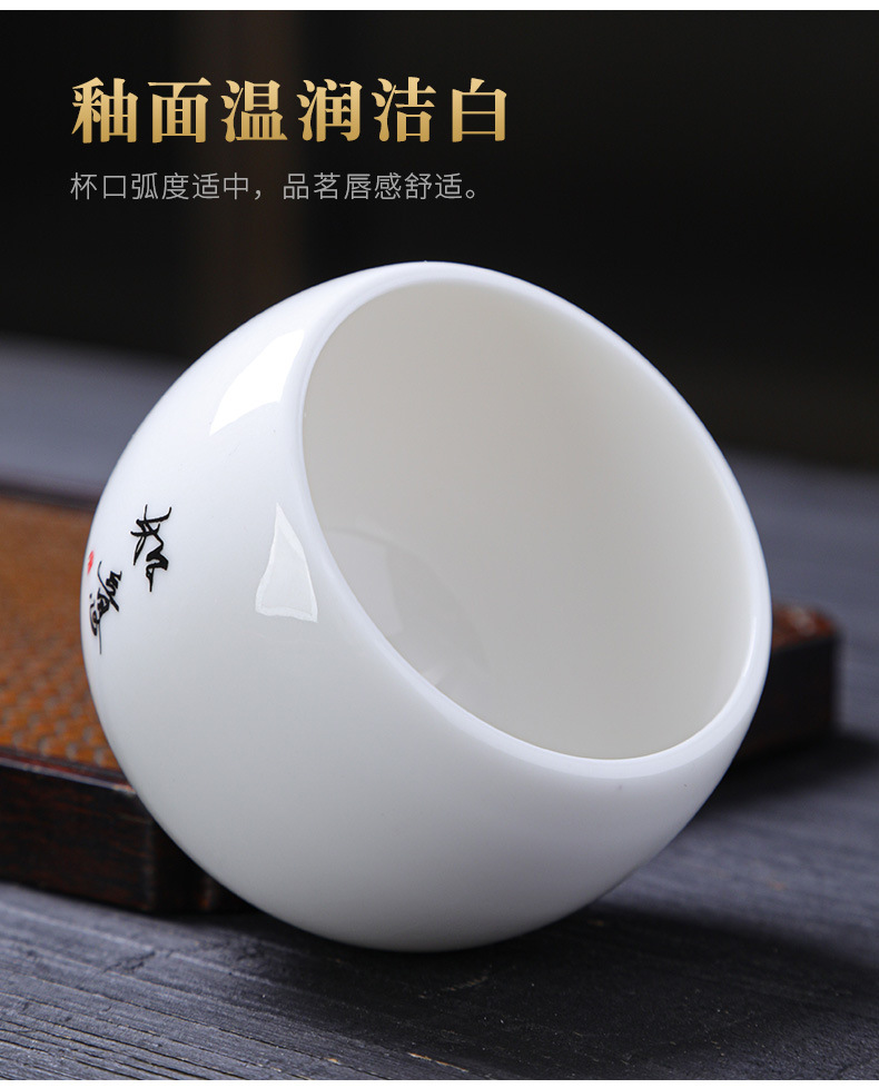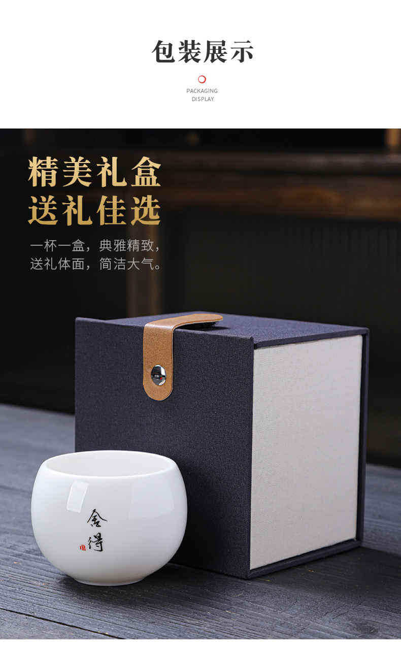 羊脂玉白磁茶杯主人杯単杯家庭用品茗杯男性用大型陶磁器茶杯高級ギフトカップ