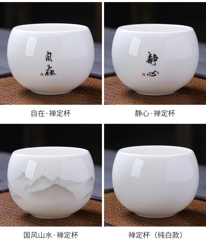 セラミックティーカップマトン脂肪翡翠磁器マスターカップ白磁カンフーティーセットパーソナルカップティーカップ大型ティーボウル家庭用カップ