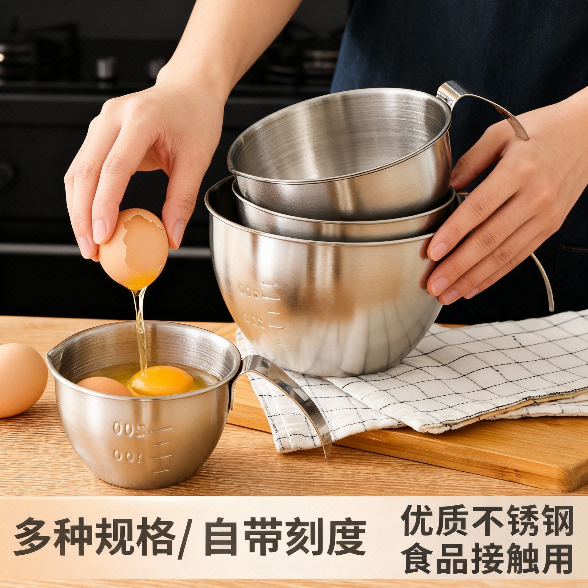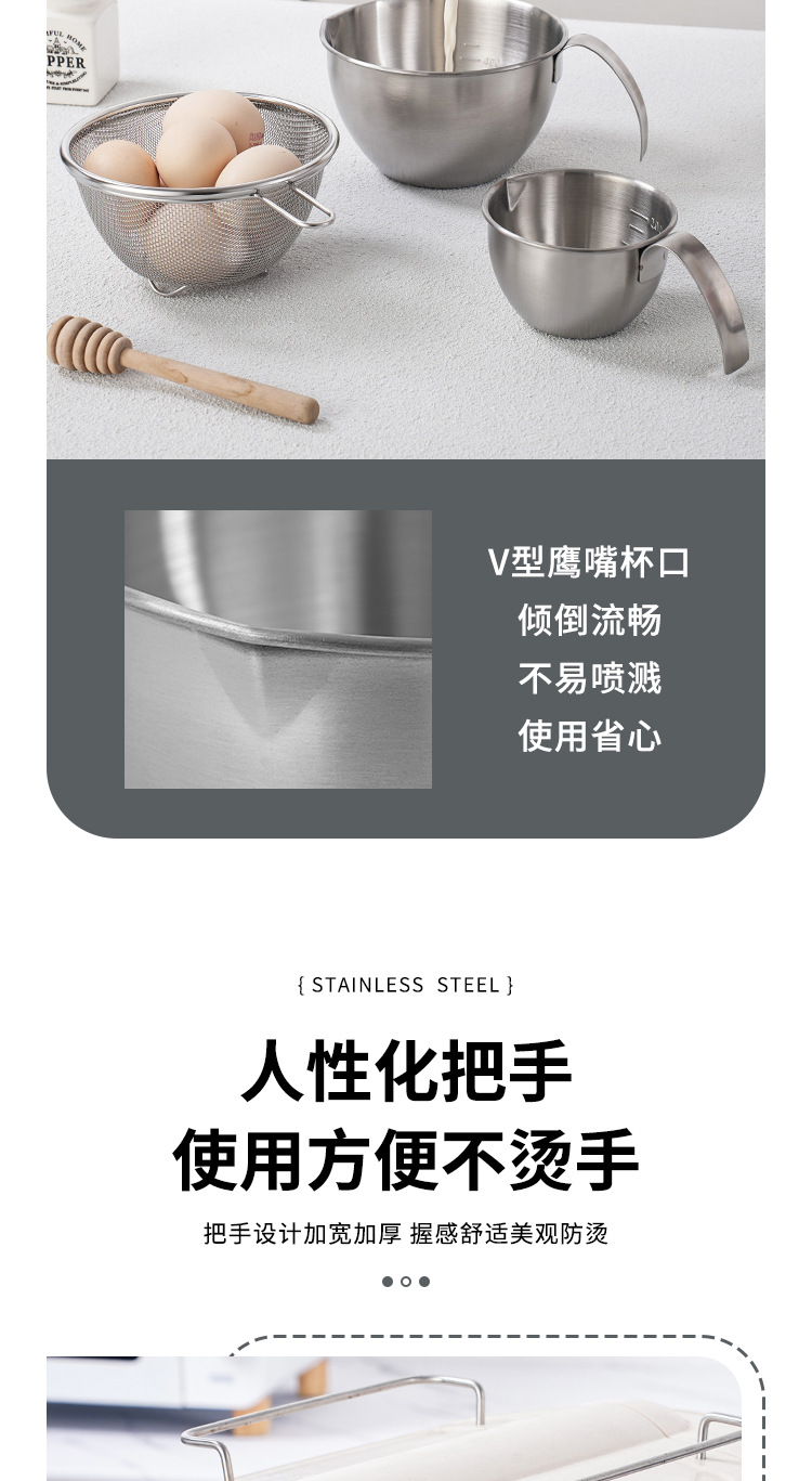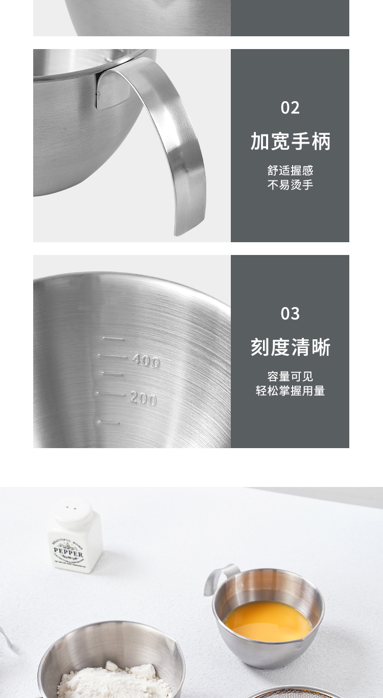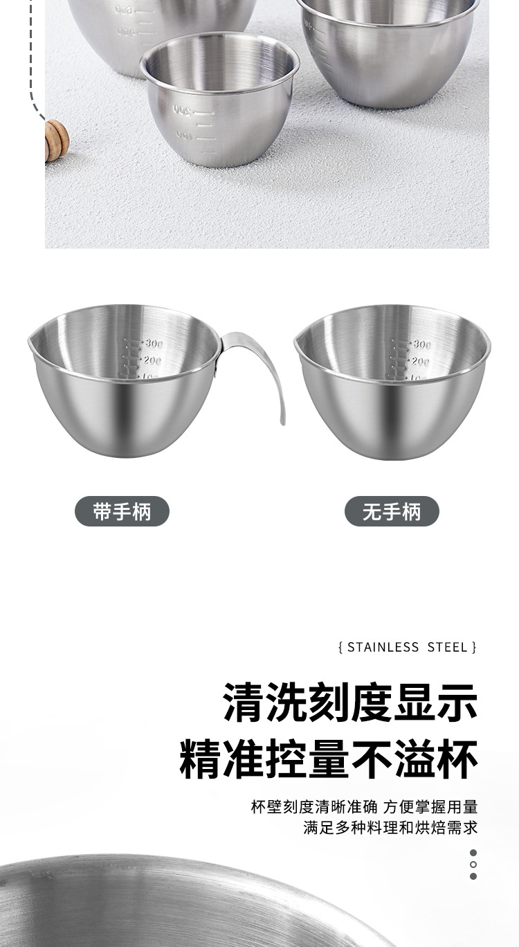 不锈钢迷你打蛋盆带手柄刻度量杯厨房烘焙碗沙拉料理碗搅拌碗