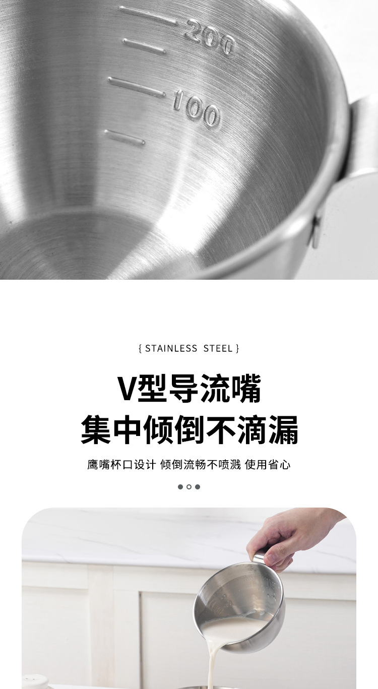 304ステンレスハンドル計量カップ焙煎スケール付きミリリットルキッチン家庭用計量筒豆乳カップミルクティー店専用