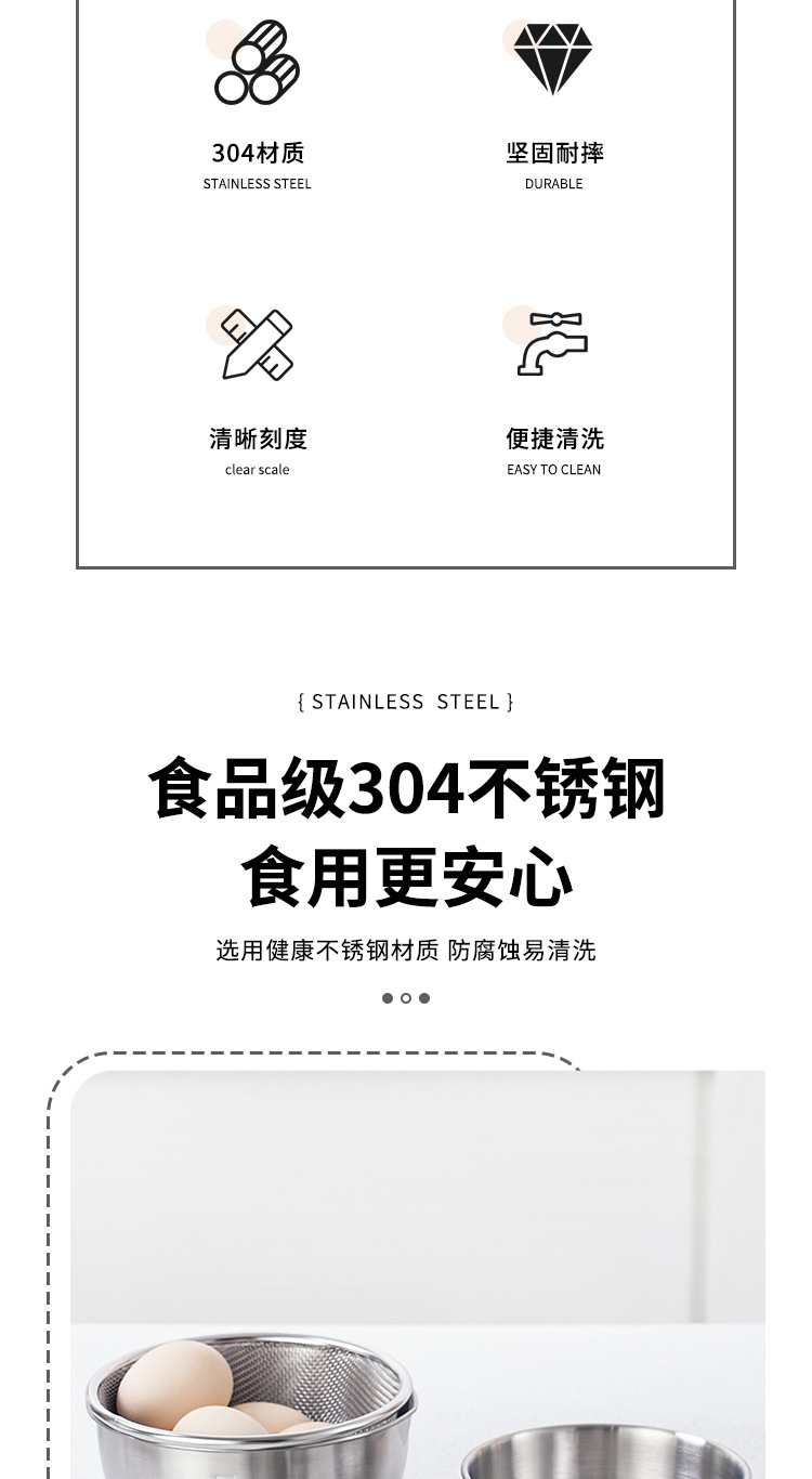 304ステンレスボウル目盛り付き料理ボウル家庭用食器焙煎ボウル果物サラダボウルins風卵ボウル