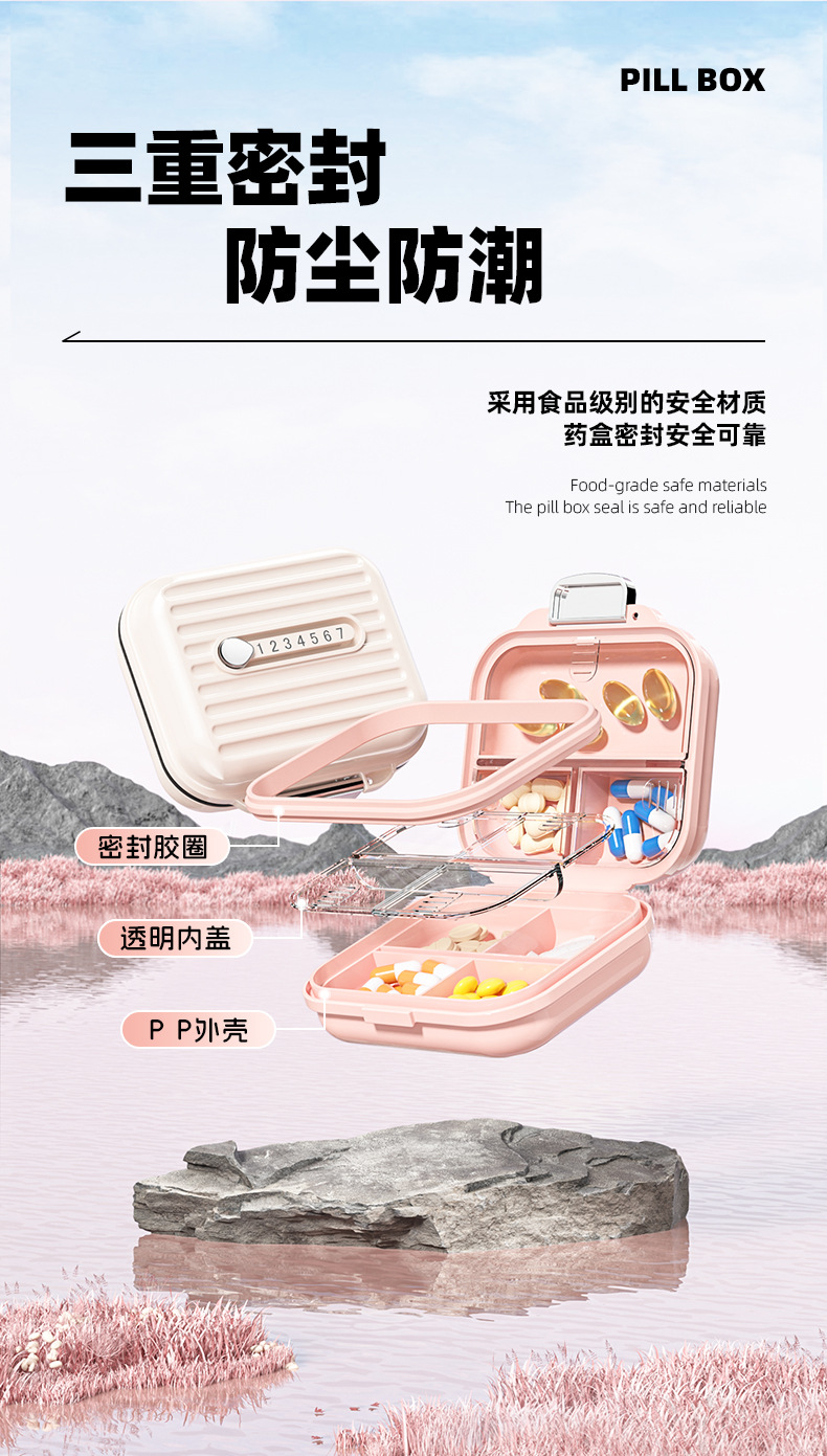 磨砂药盒便携式药盒分装盒一周七天随身小药盒密封大容量药片收纳