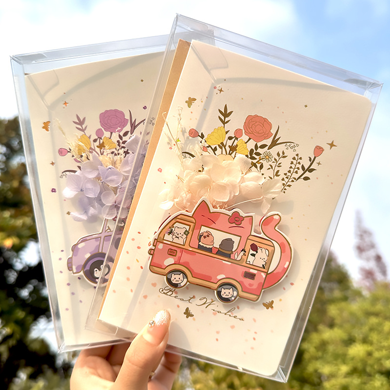 新しいタイプのグリーティングカードの精巧なメッセージカードの未来の明るい乾いた花の封筒のはがきの少女の心の小さい清新な二つ折りのカード