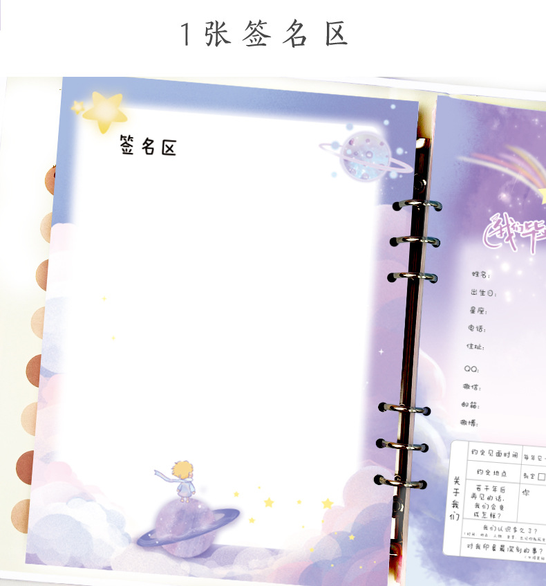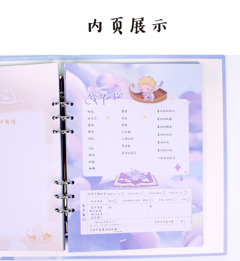 辰陽文化学友録時間シャトル王子シリーズ6穴バインダークリップ中学生卒業記念帳