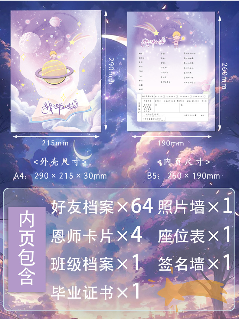 クラスメートは小学生の六年生の女子学生2025の新型高颜値卒業記念帳のかわいい漫画のバインダー本を記録します。