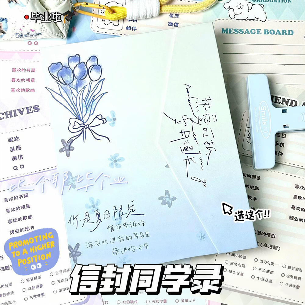 Ins風バラ蝶同級生録小学生創意卒業記念帳女子学生高颜値成長メッセージ帳