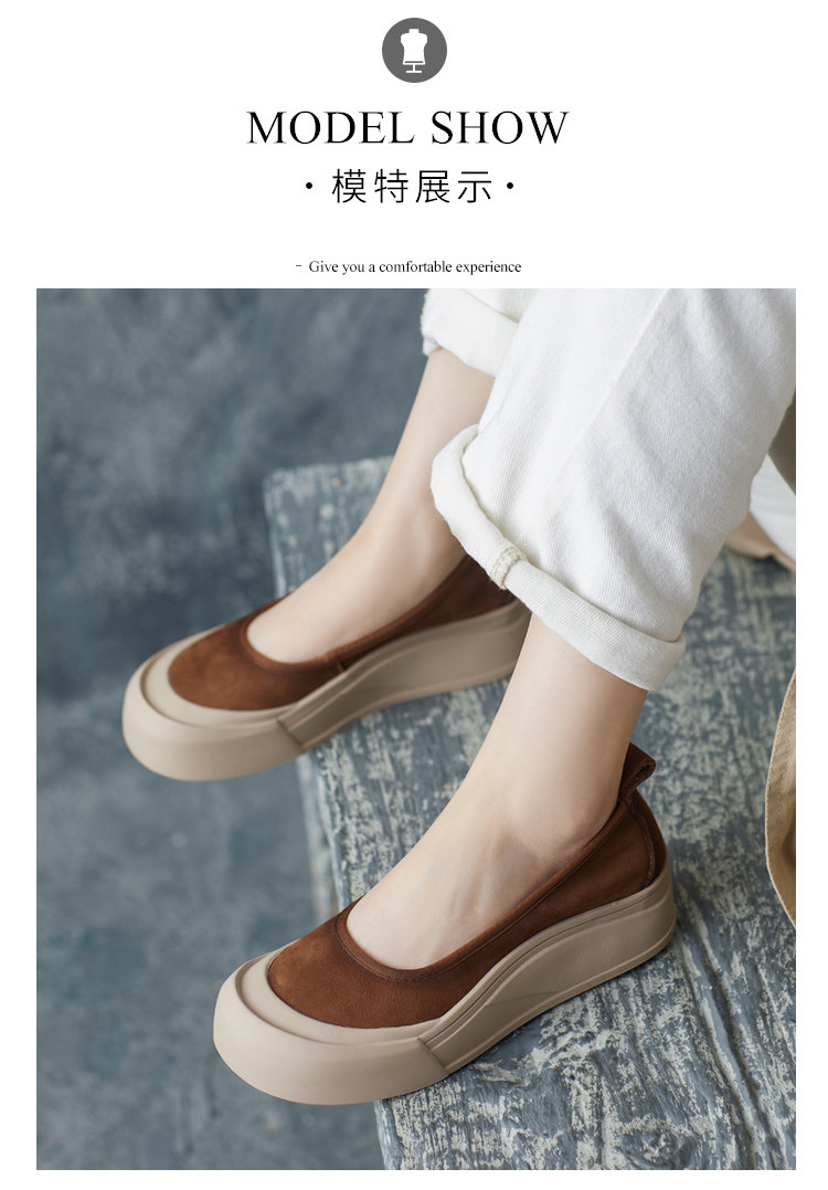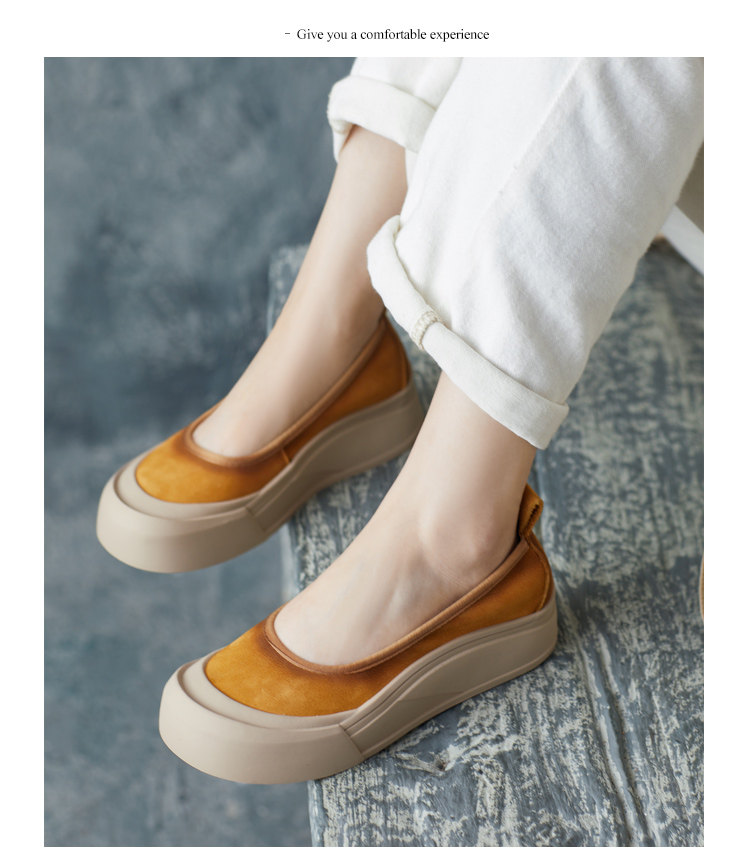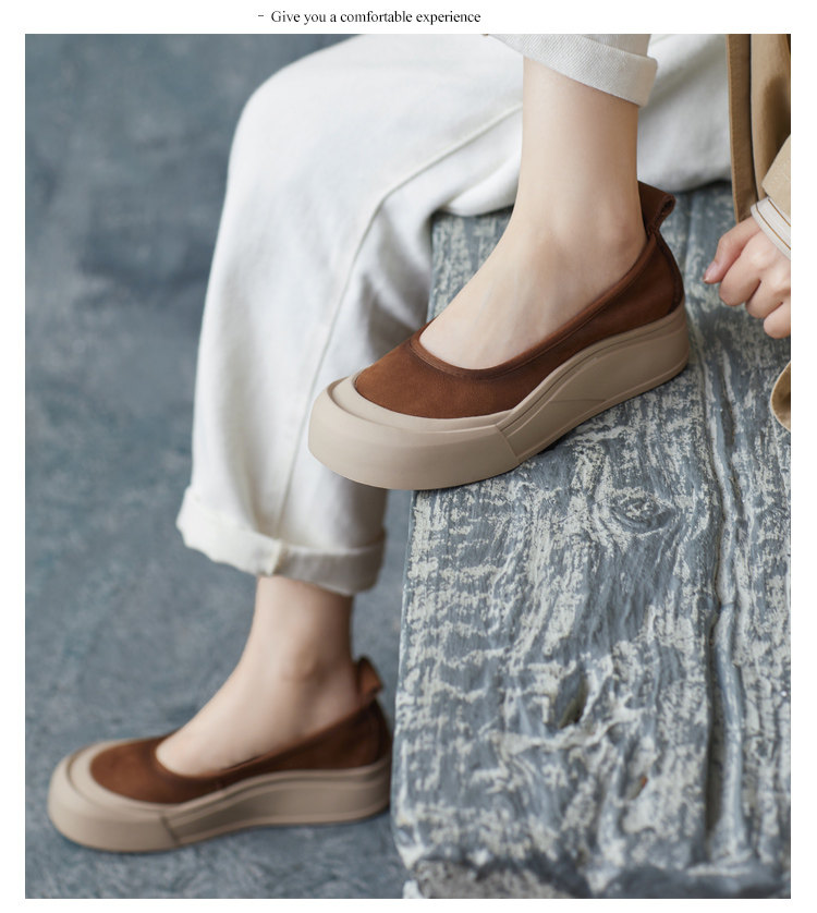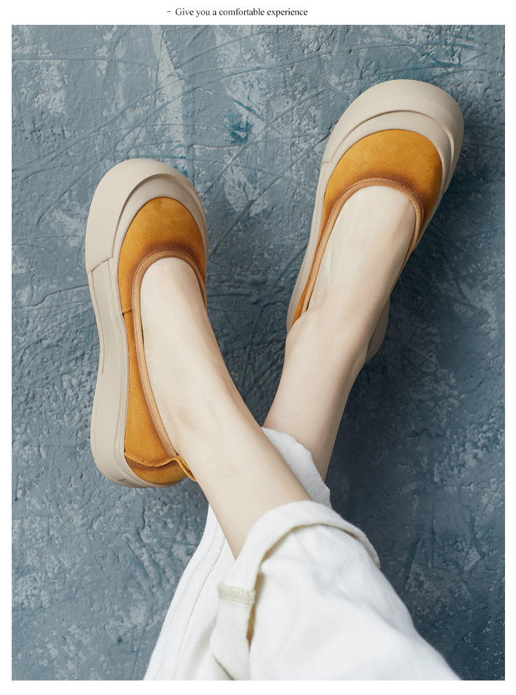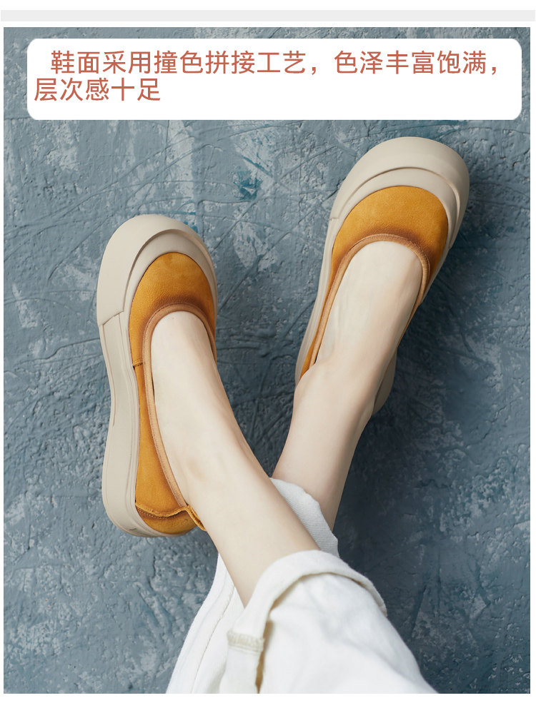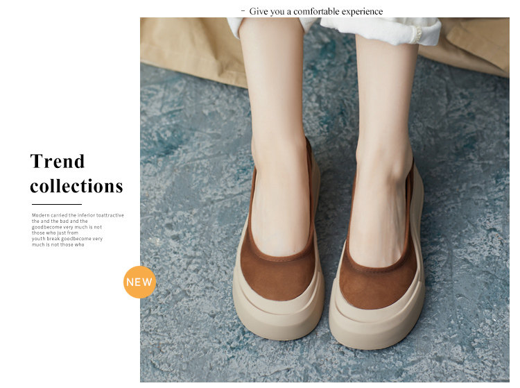 浅い口,太いヒール,防水プラットフォーム,カラーブロック,革の接合