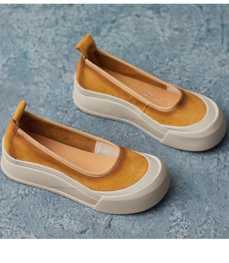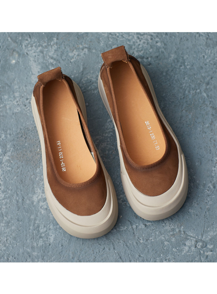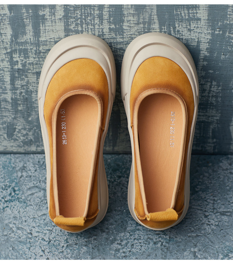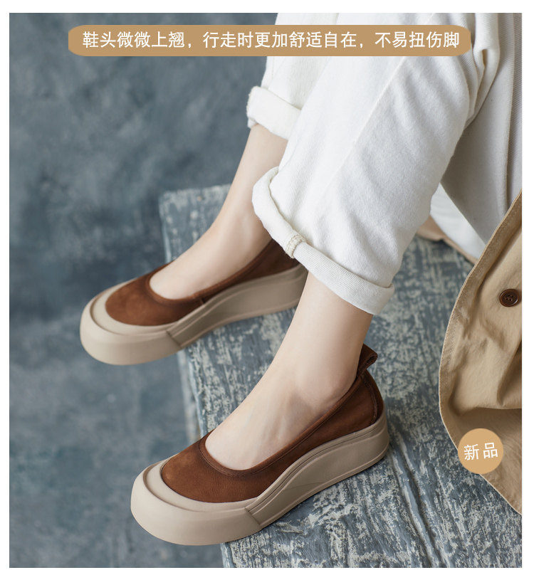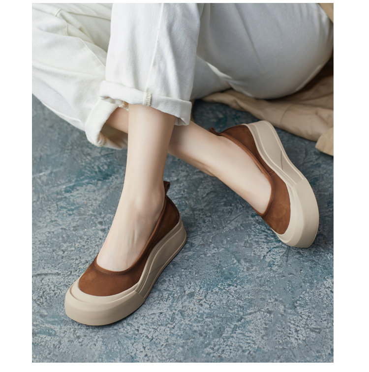 浅い口,太いヒール,防水プラットフォーム,カラーブロック,革の接合