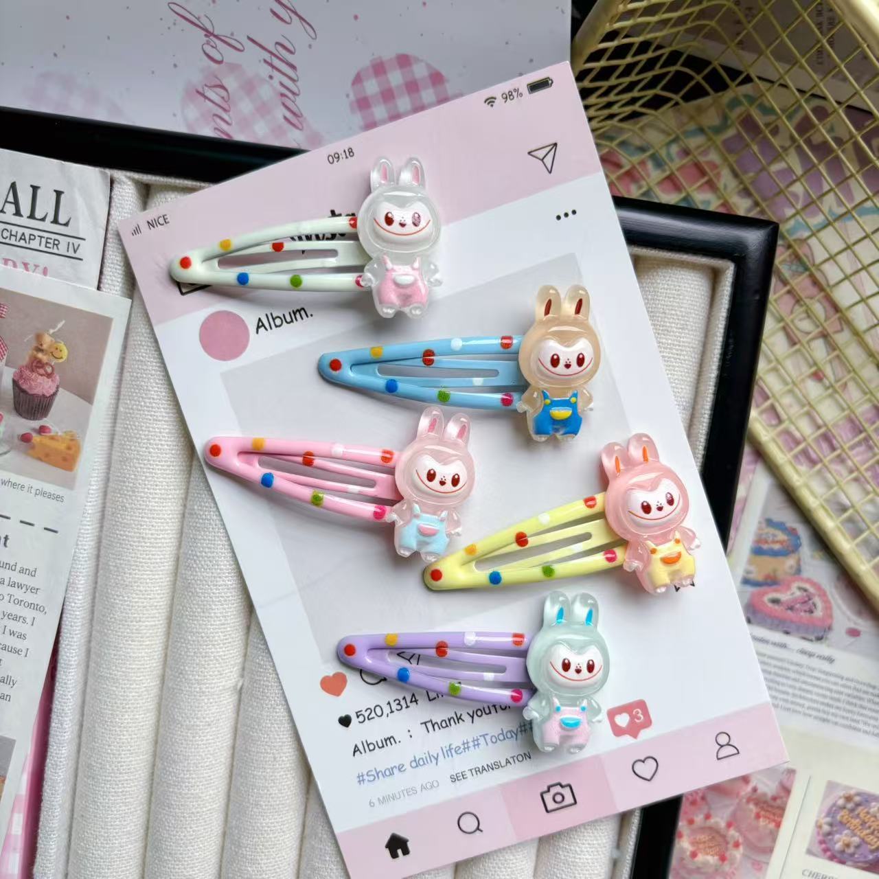 漫画かわいいラブブ bb ガール水玉ヘアアクセサリーヘアピンサイド前髪ヘッドバンドクリップサイド海辺ヘアピン新しいスタイル