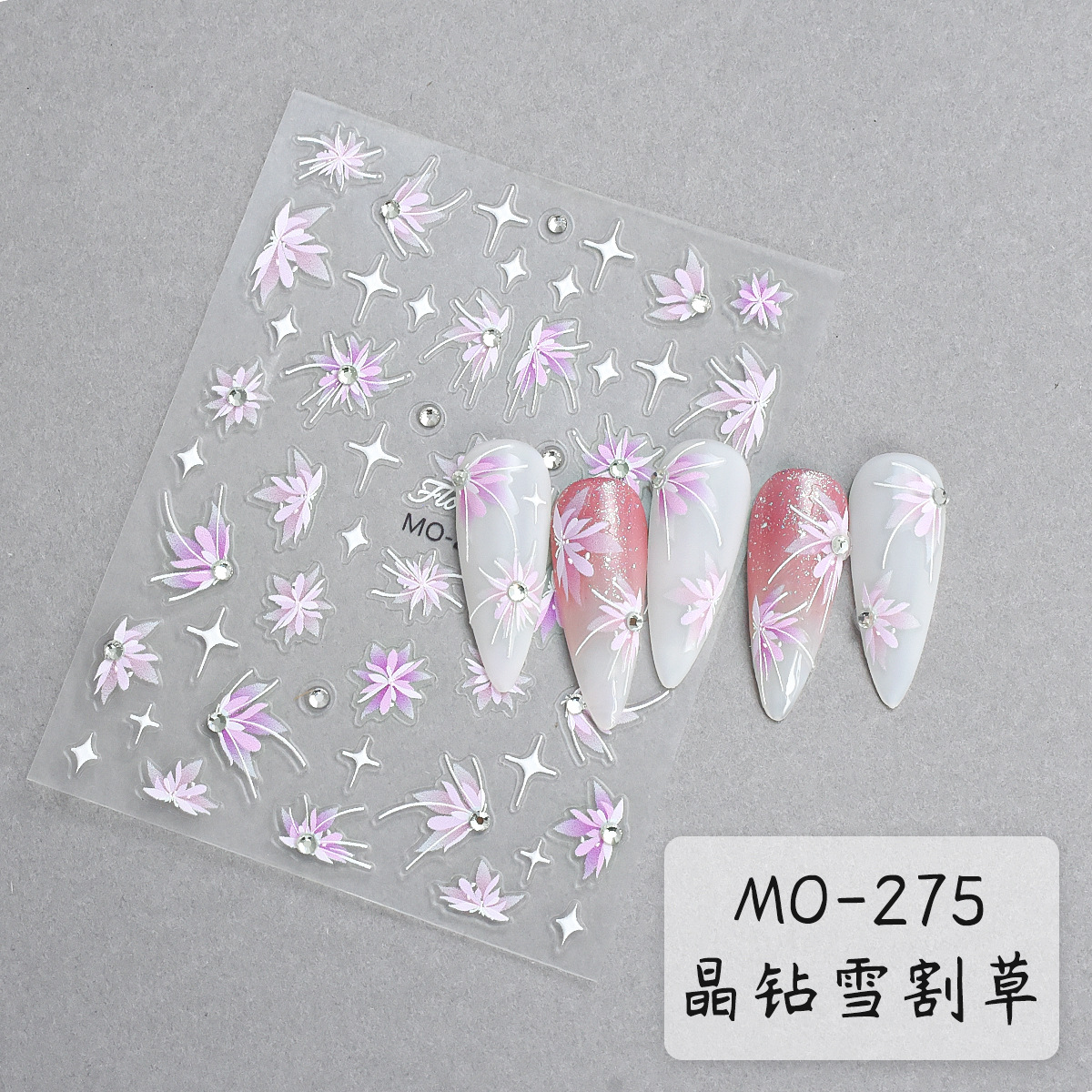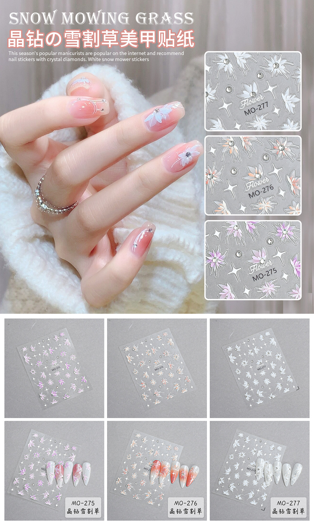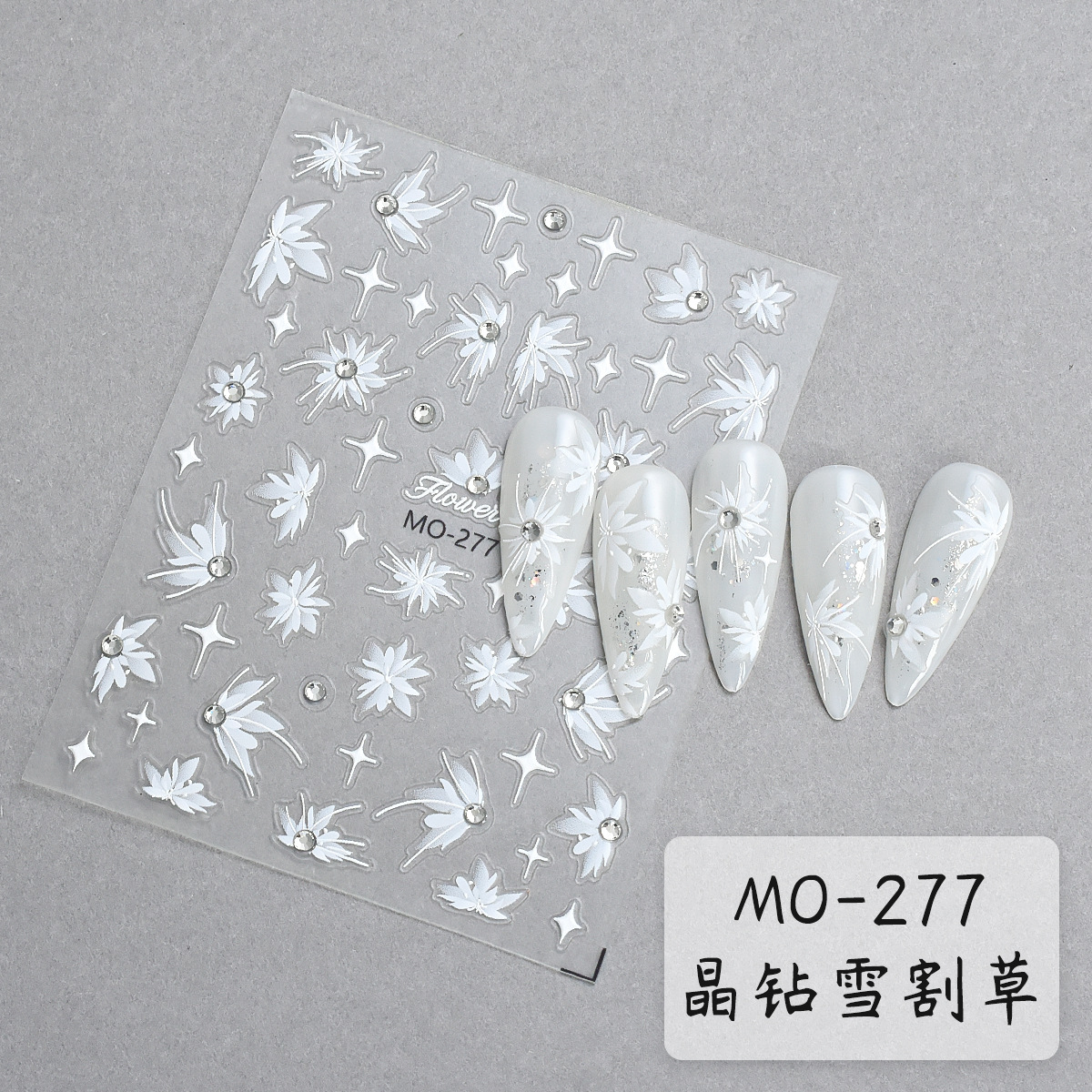 夕夕爆金晶ドリルレリーフ手描き花ネイルシール立体白色半透雪草刈り爪シールアクセサリー