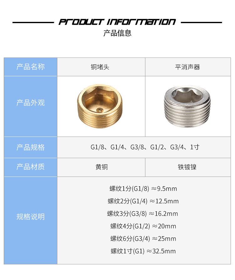 全銅金属内六角外糸プラグねじ四分六分一寸内六角プラグ (中迅五金)
