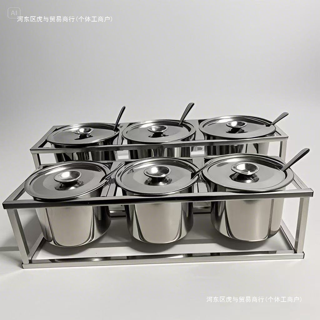 不锈钢加厚调料调味商用开口放勺易清理猪油罐辣椒油罐烧烤调料盒