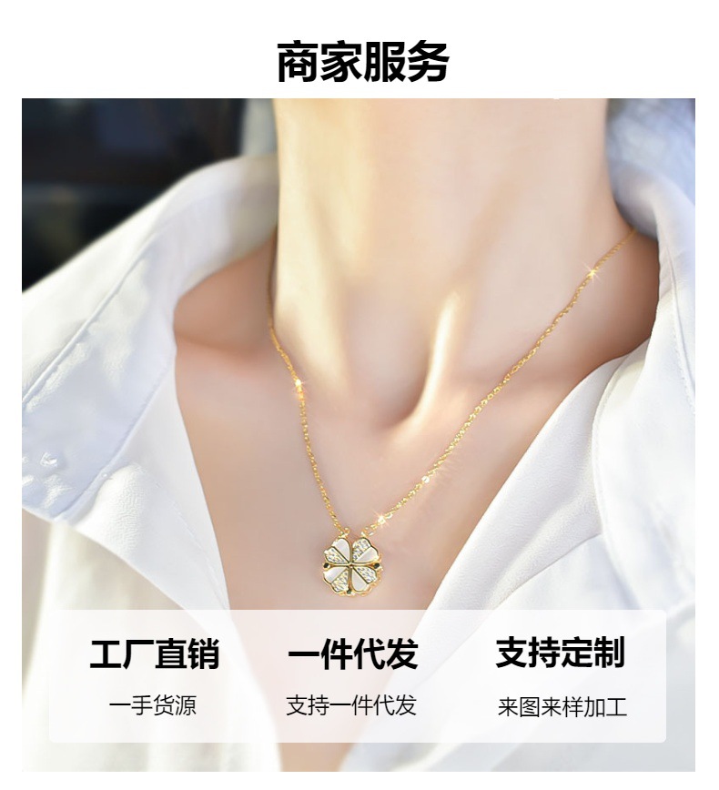 女性用ネックレス、クロスボーダーイン気質四つ葉の花ネックレス、ニッチデザイン、ファッショナブルなフルダイヤモンドジュエリー、積み重ね可能なチタン鋼ネックレス