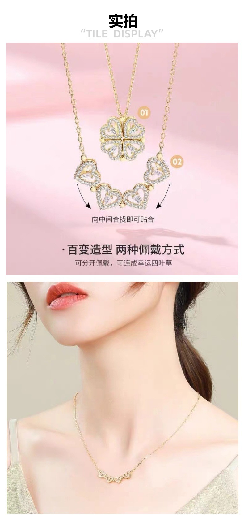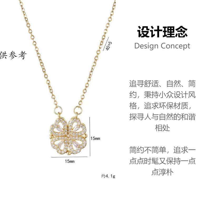 【铜吊坠】亚马逊跨境爆款轻奢满锆轻奢爱心四叶草磁吸项链高级感