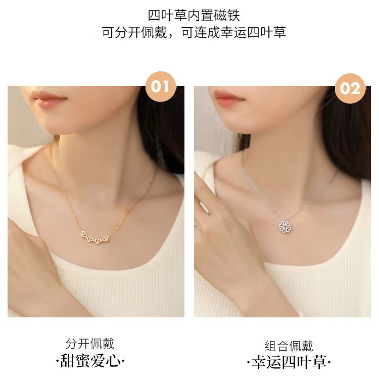 A-シルバー マグネット式 2 ピース 四つ葉のクローバー ネックレス,A-ゴールド磁気ツーピース四つ葉のクローバーネックレス,A-ローズゴールド磁気ツーピース四つ葉のクローバーネックレス,B-ゴールド磁気ツーピース四つ葉のクローバーネックレス