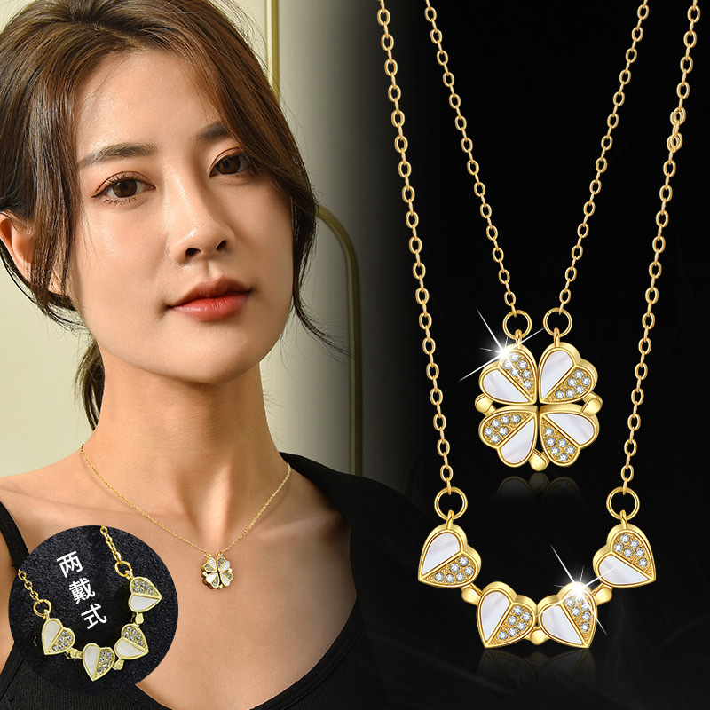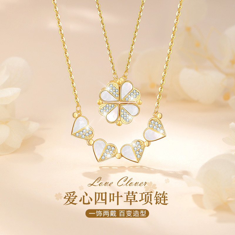 闪钻折叠项链一款两戴四叶草吊坠爱心女款ins新款情人节礼物女友