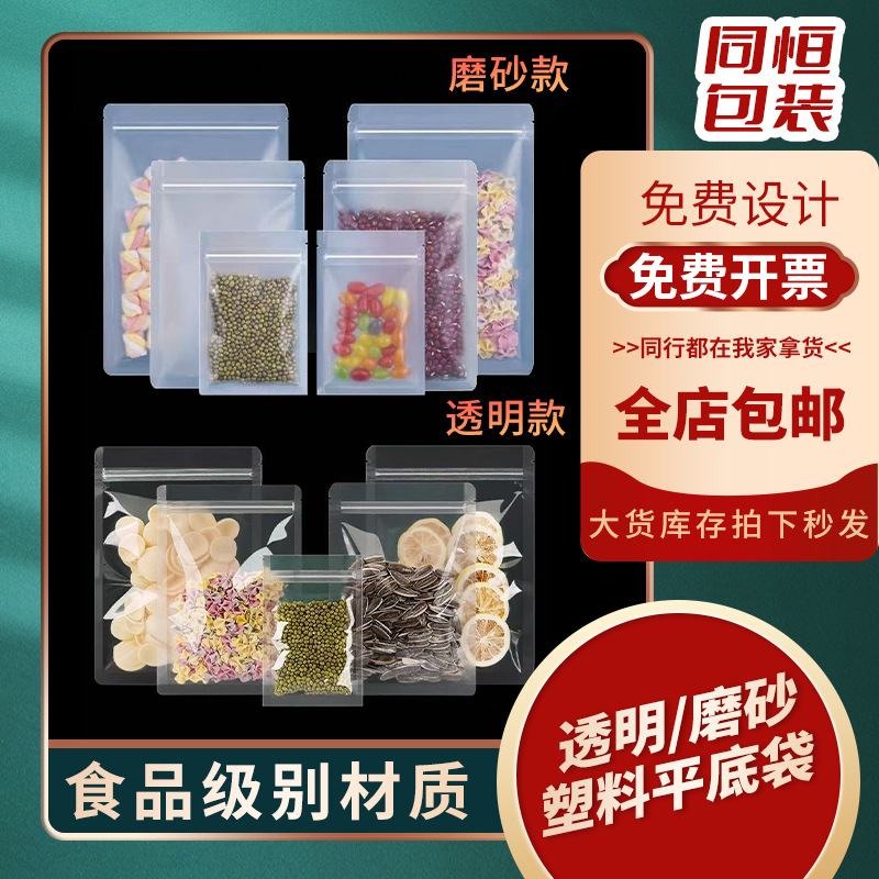 つや消し透明平底ジップロックバッグナッツドライフルーツ包装袋スナック密封食品袋香り茶茶密封袋