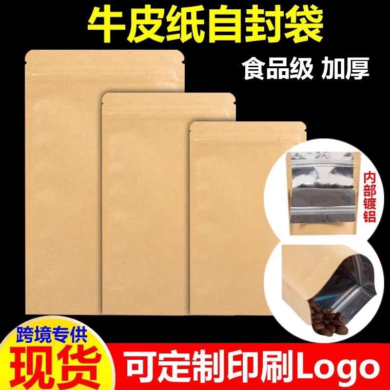 食品包装袋卸売 アルミ蒸着牛革紙ジップロック袋 食品・茶葉・乾燥果物・キャットフード用自立型密封袋