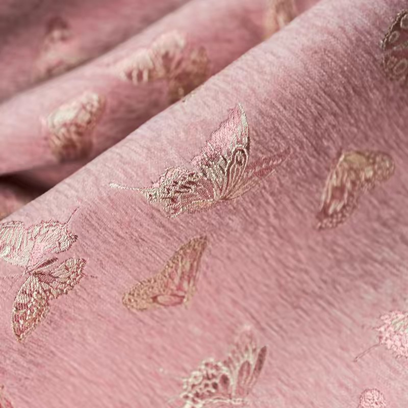 中国風シェニール織りジャカード生地 秋冬コート 厚手 レトロ風漢服 ピンク ベージュ ホームテキスタイル